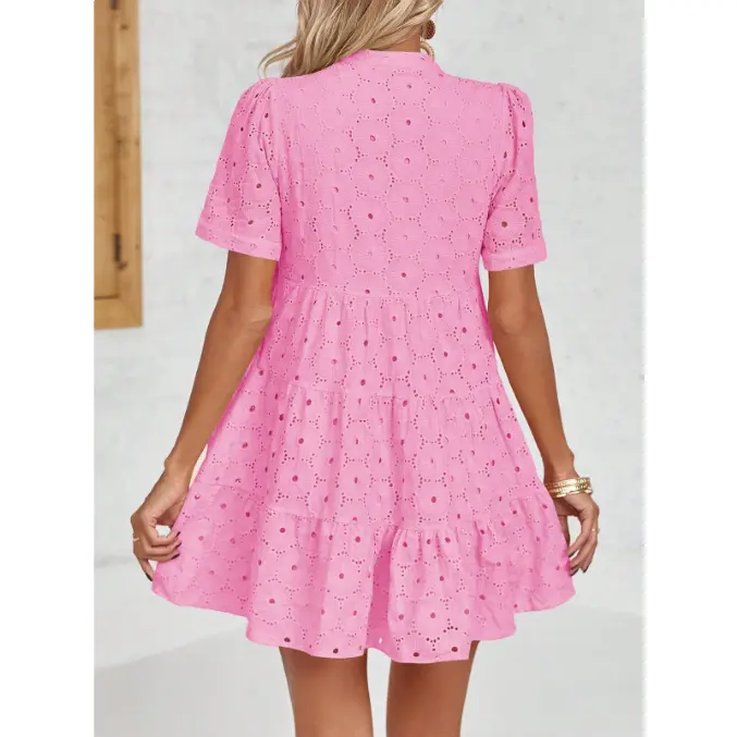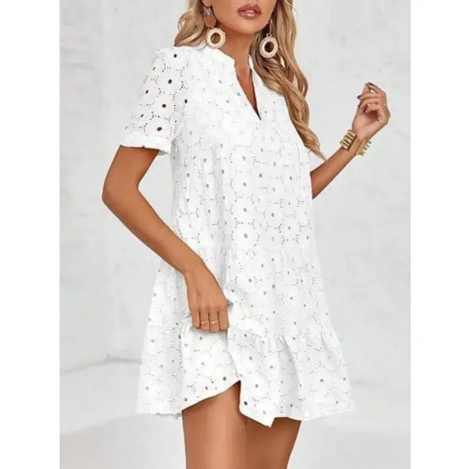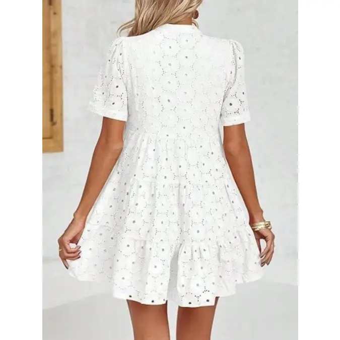 Women’s Summer Lace Dresses Eyelet Casual Flowy Babydoll Swing Short Sleeve V Neck Tunic Dress