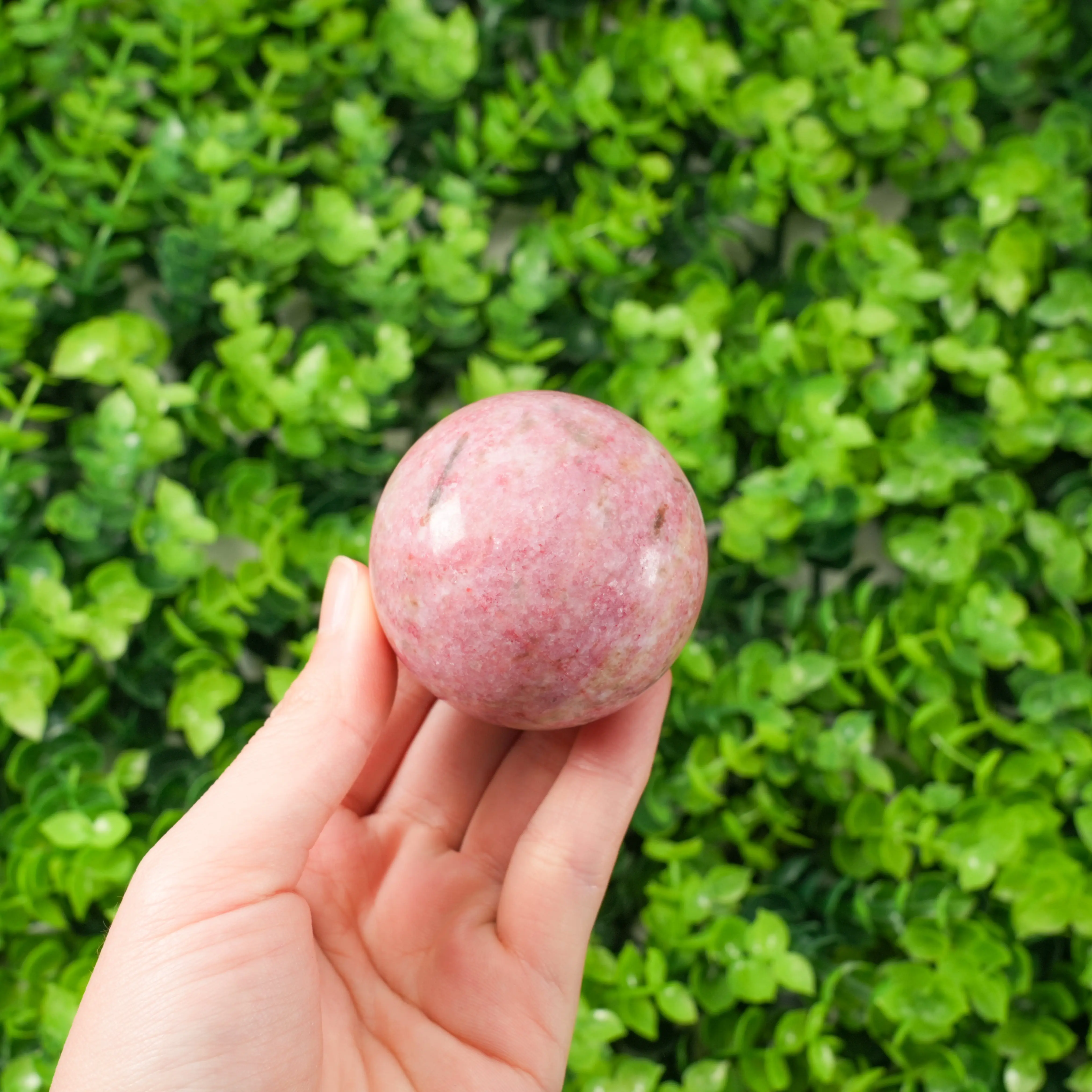 Natural Thulite Crystal Crafted from genuine thulite (pink zoisite), known for its beautiful rosy tones and natural patterns. Each sphere is unique.