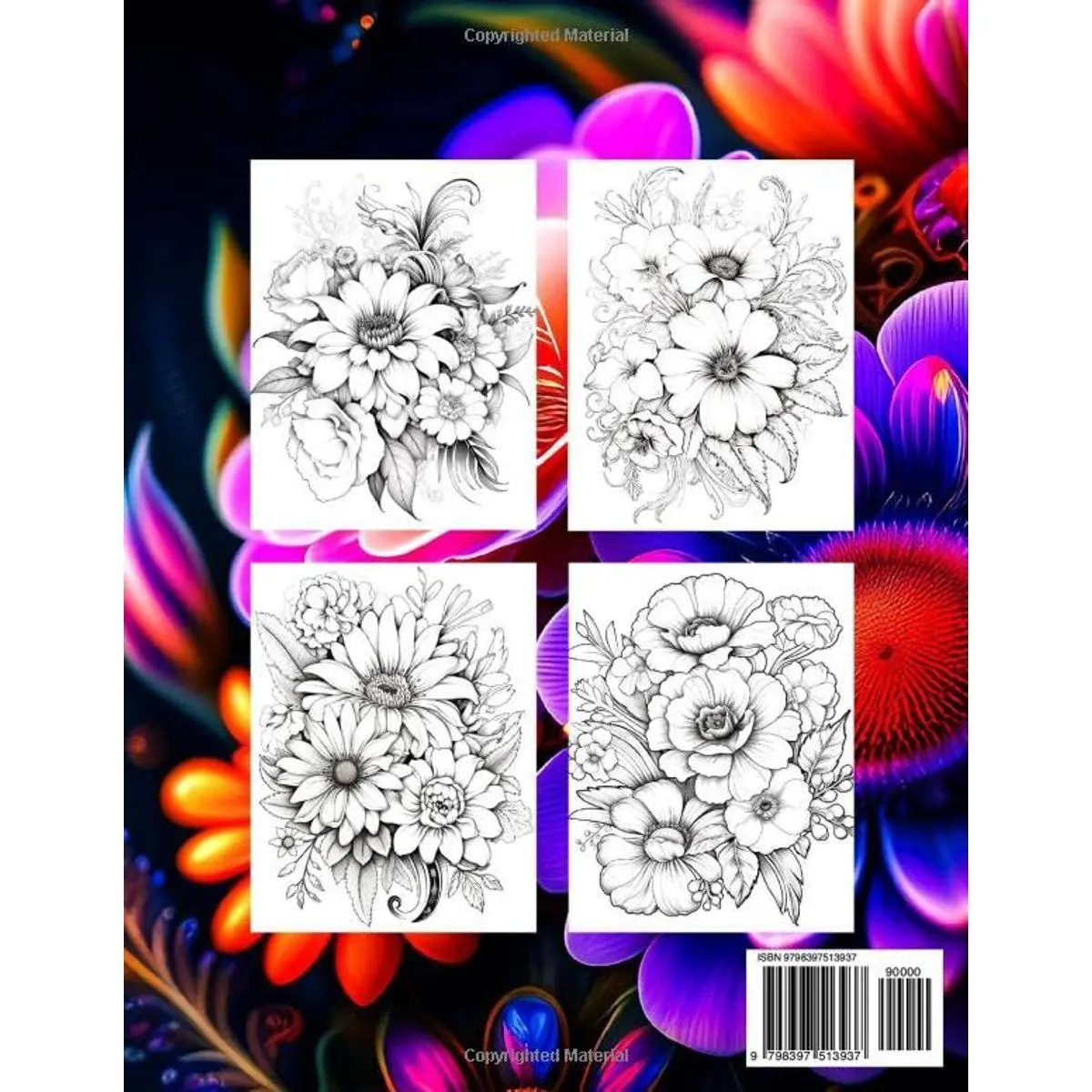 ·High Quality: 102 Pages of uniquely designed illustrations of beautiful flowers on high quality white paper. Includes: The beautiful cover of the book inside as a bonus that you can put your own color twist on!