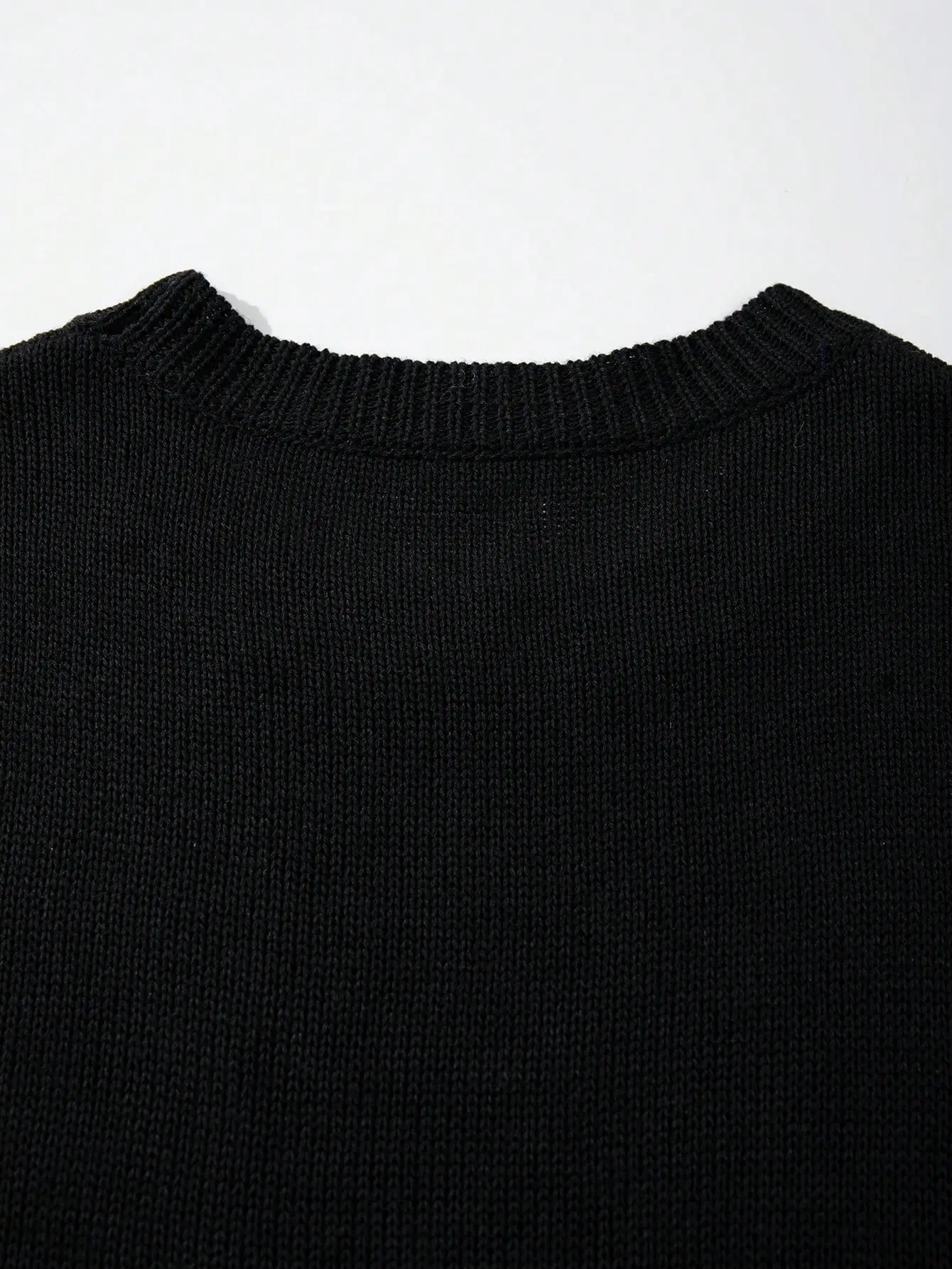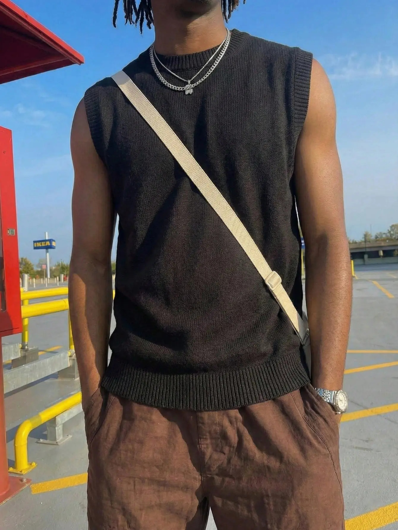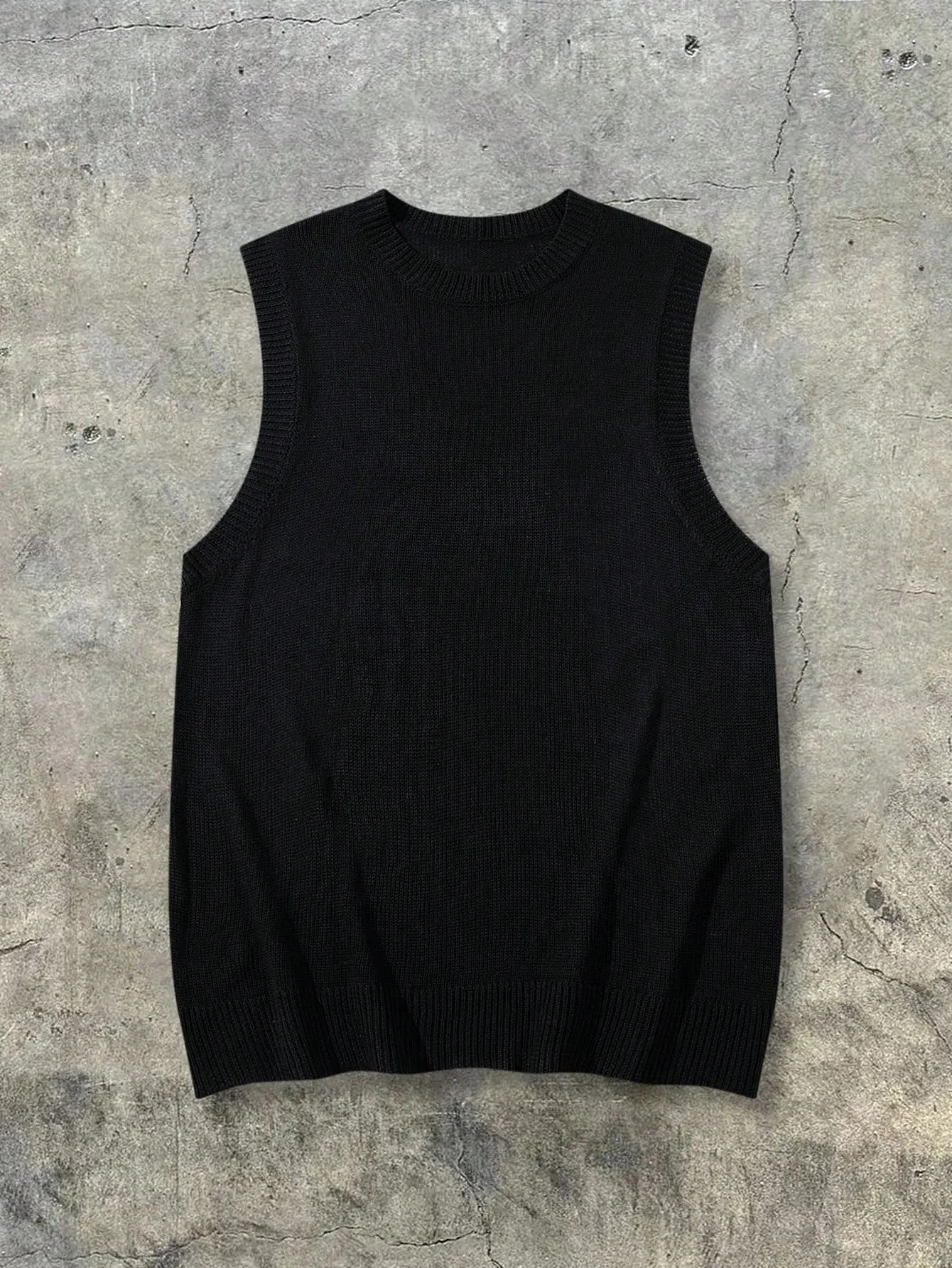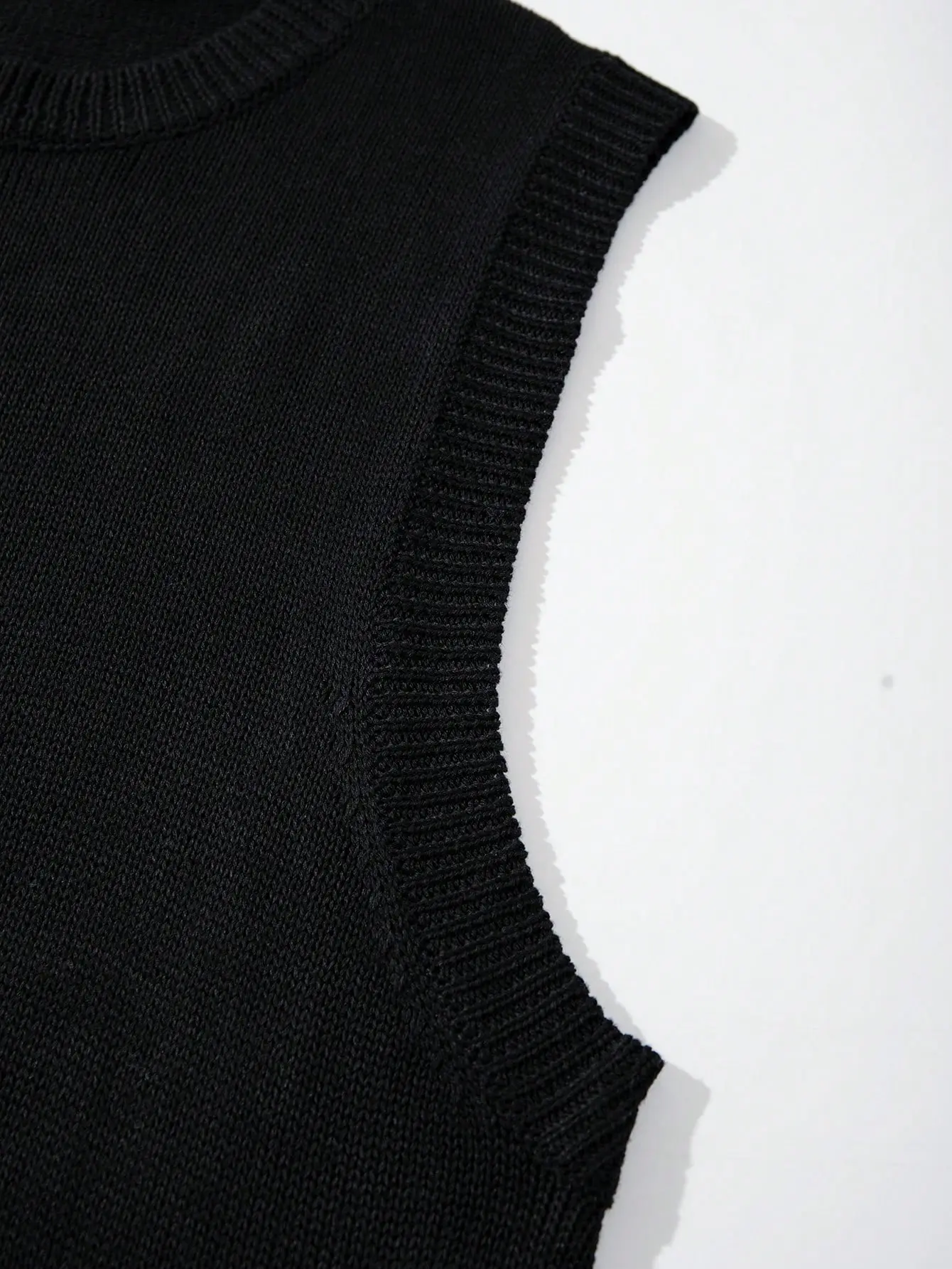Minimalist Clean Fit! Solid Black Crew Neck Knit Vest | Unisex Layering Staple