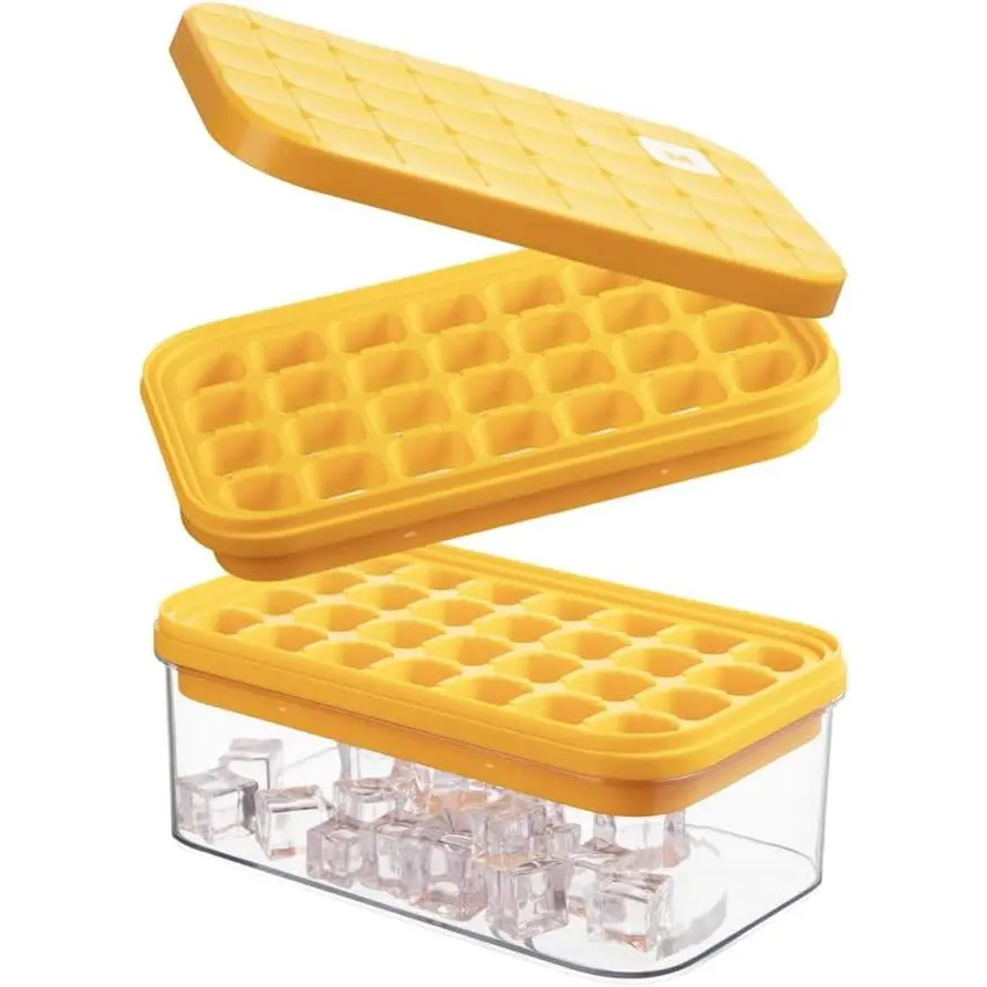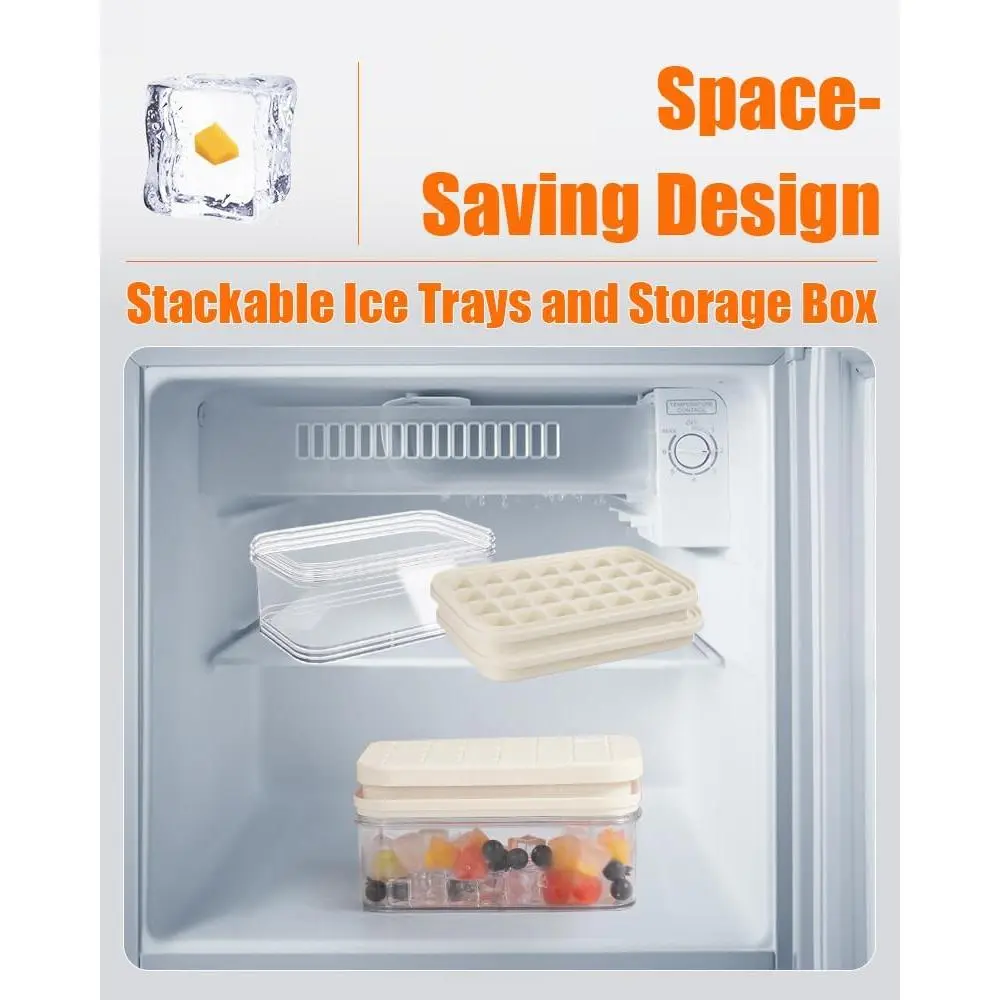 Ice Cube Tray with Lid&Bin, Ice Cube Mold with 56 Cubes, Stackable Ice Trays for Freezer with Easy-Release Silicone Bottom, for Drinks, Coffee, cocktail