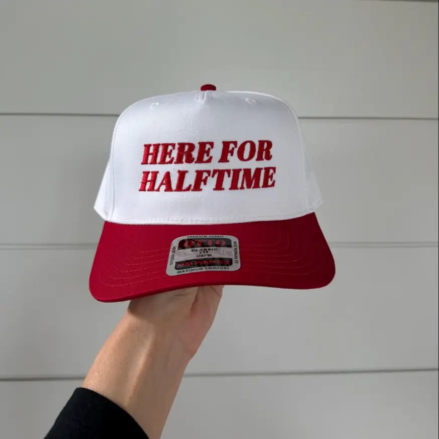 HERE FOR HALFTIME Embroidered Hat Funny Sport Fan Baller Gif Baseball Two Tone Hat