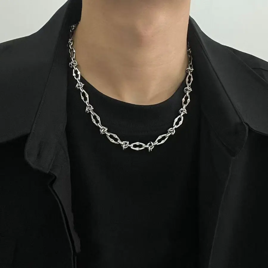 Hip-hop personality titanium steel non-fading thorns knotted necklace men's lip chain trendy niche high-end jewelry sweater chain