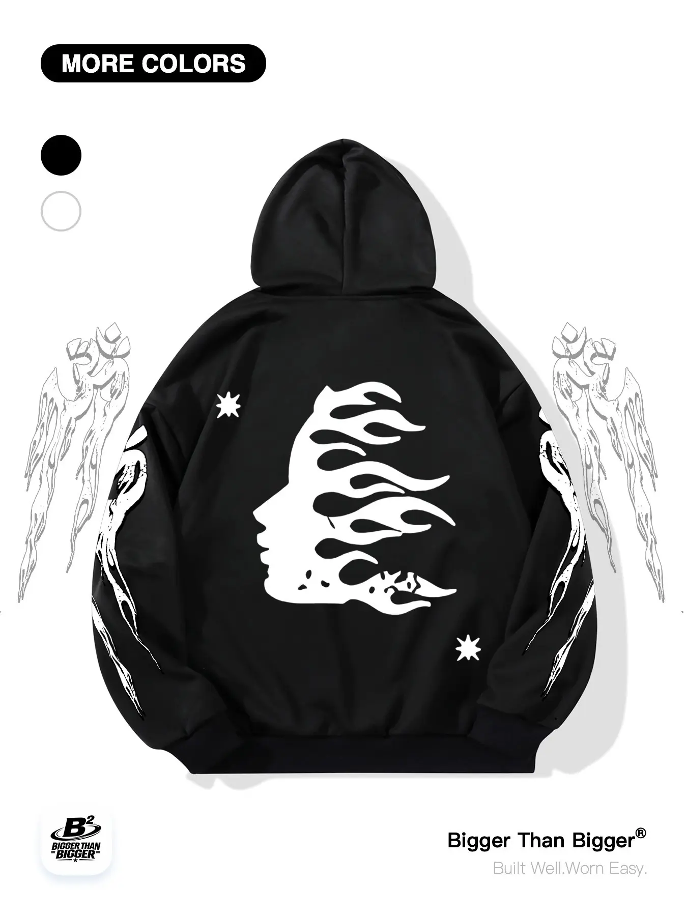 Hell Star Pattern Streetwear Loose Zip Hoodie, Unisex Casual Long Sleeve Sweatshirt, Sporty Warm Fit, Fall & Winter Fashion