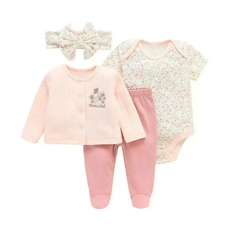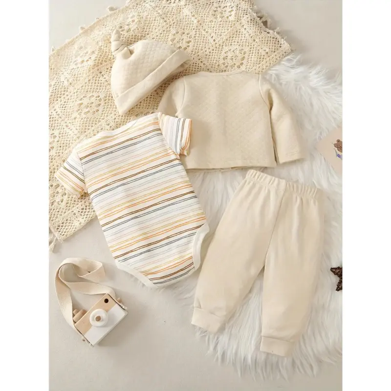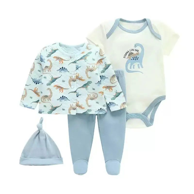[4-piece cotton pants set] 4-piece boy's cartoon giraffe cotton long-sleeve pants set| Air cotton, casual round, stretch knit, regular fit, no belt, polyester, autumn and winter season, outdoor