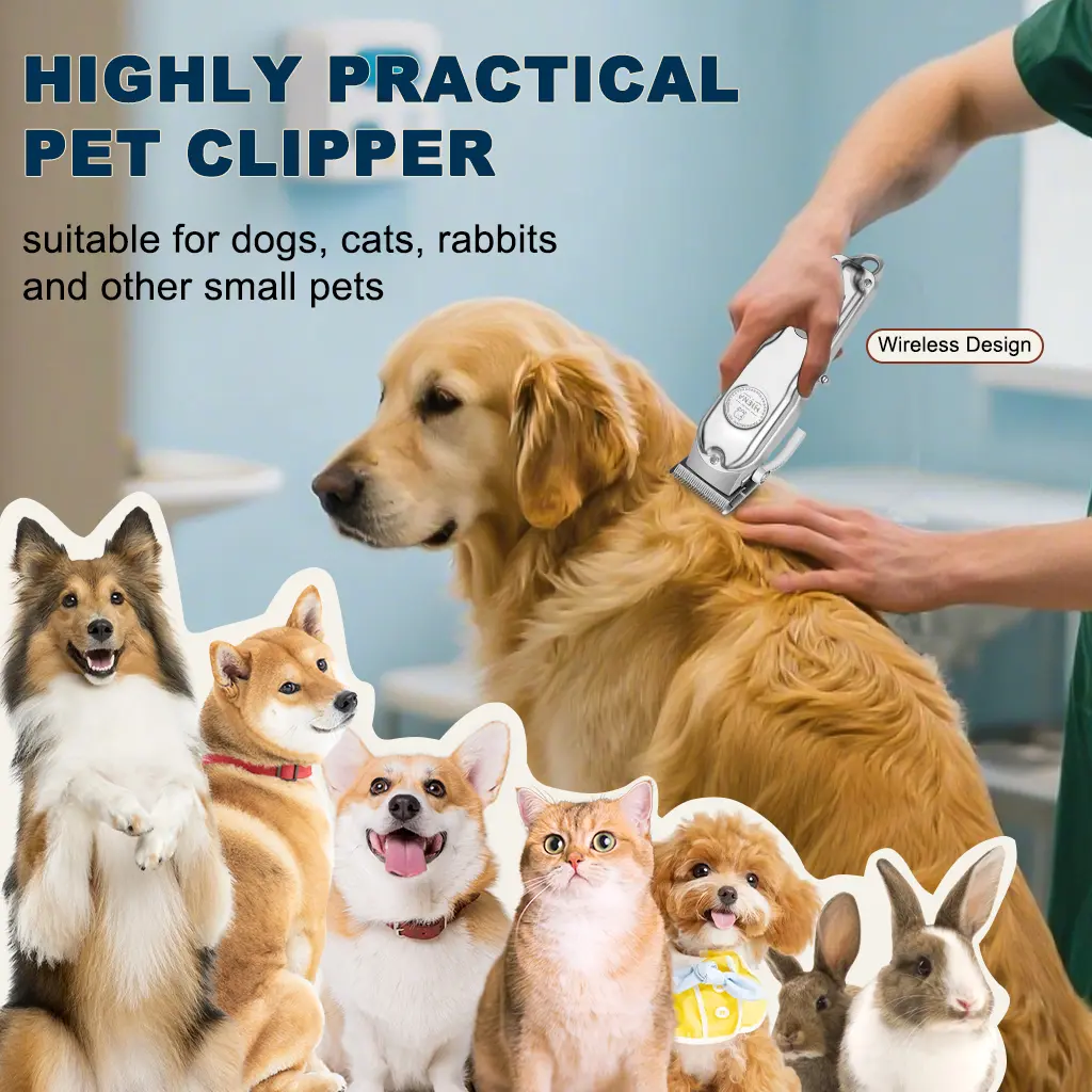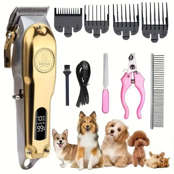 High-power pet hair clipper, grooming trimmer for dogs & cats. Low noise & no hair jamming, comes with guide combs & full accessories.