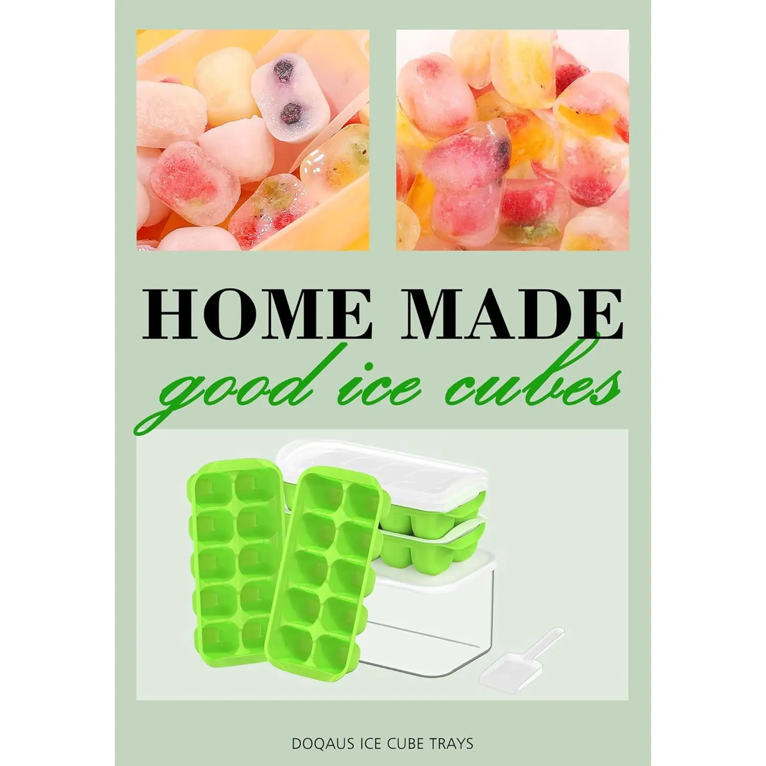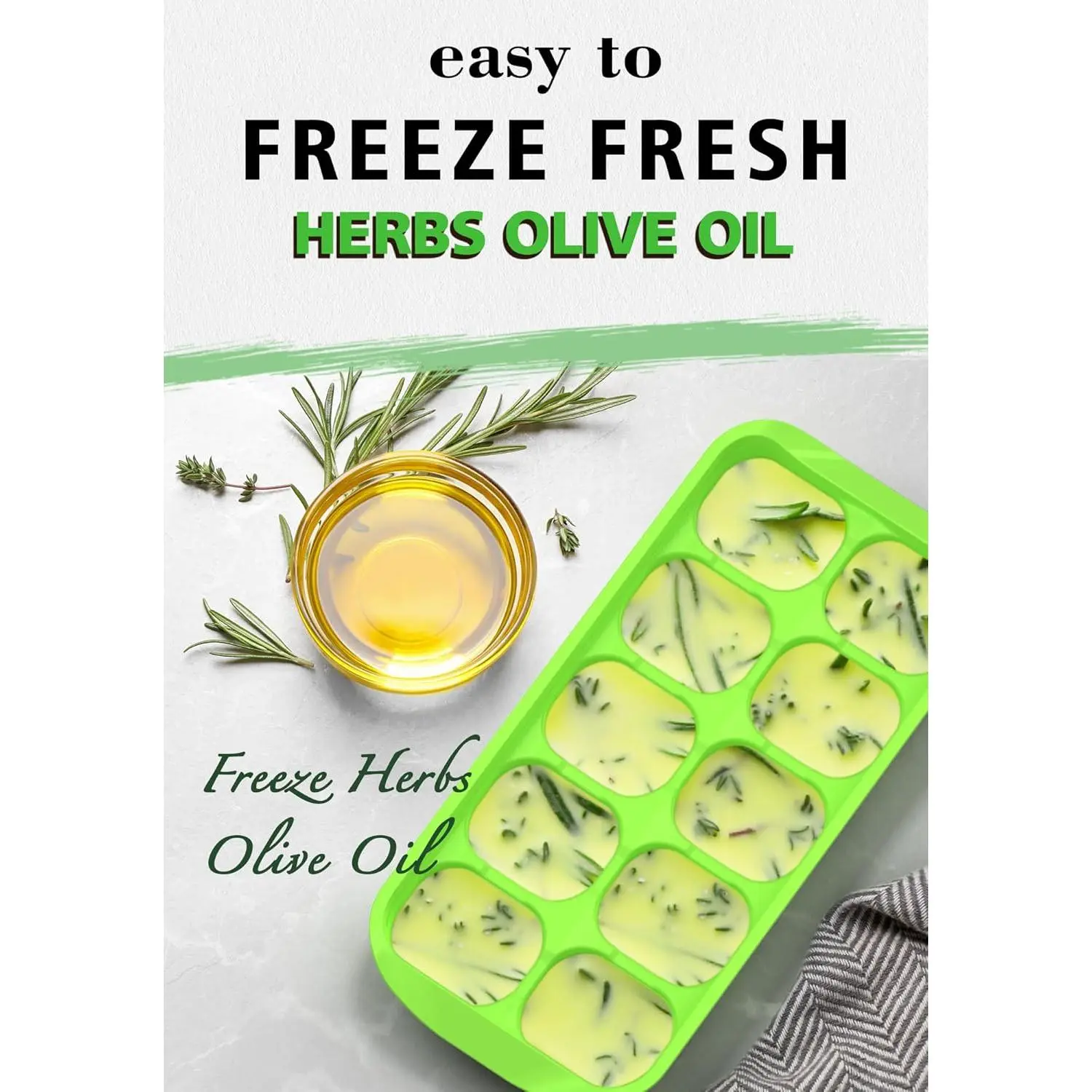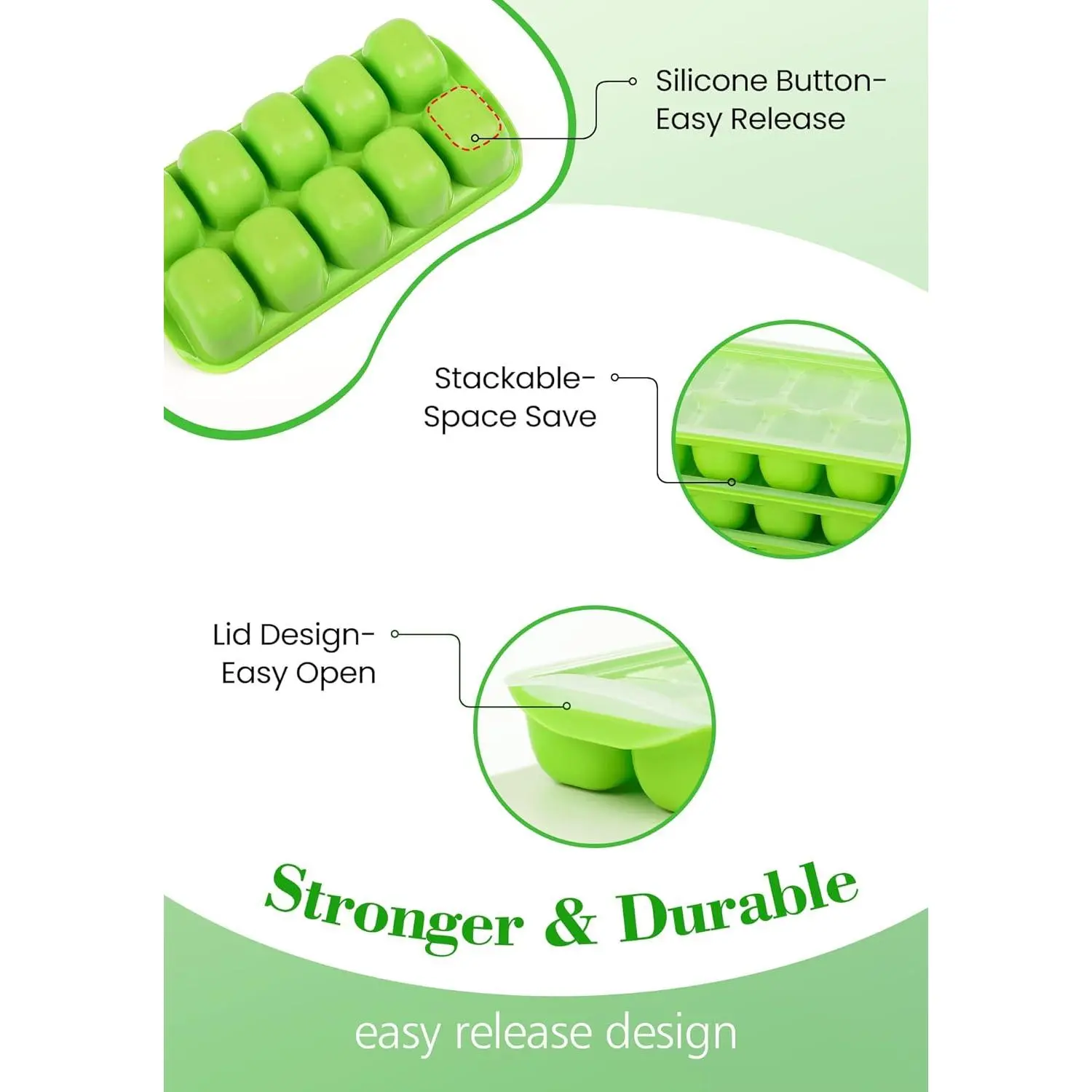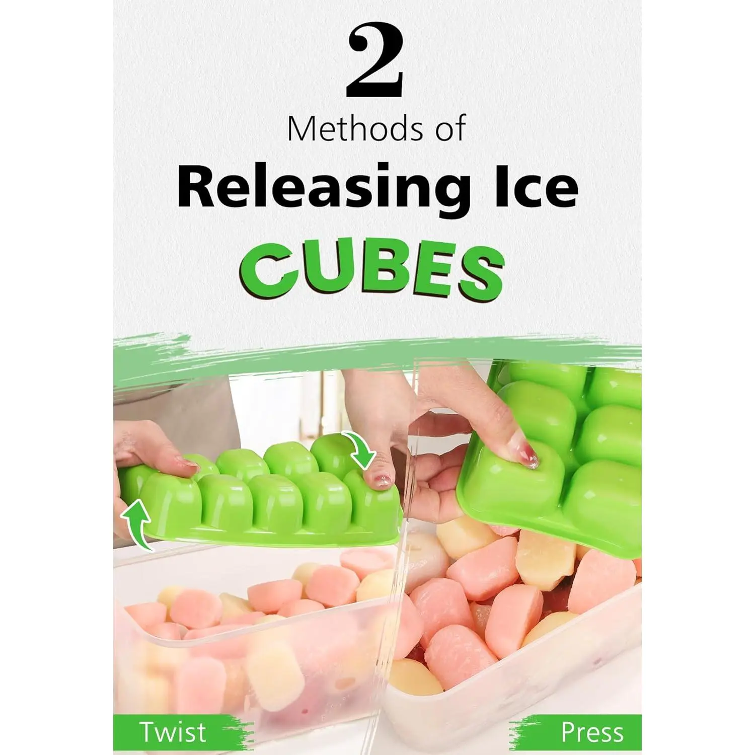 Ice Cube Tray with Lid and Bin - 4 Pack Ice Bucket Kits, Stackable Silicone Ice Trays for Freezer, Easy Pop Out, BPA Free for Cocktail, Coffee, Soup, Food, RV, Kitchen