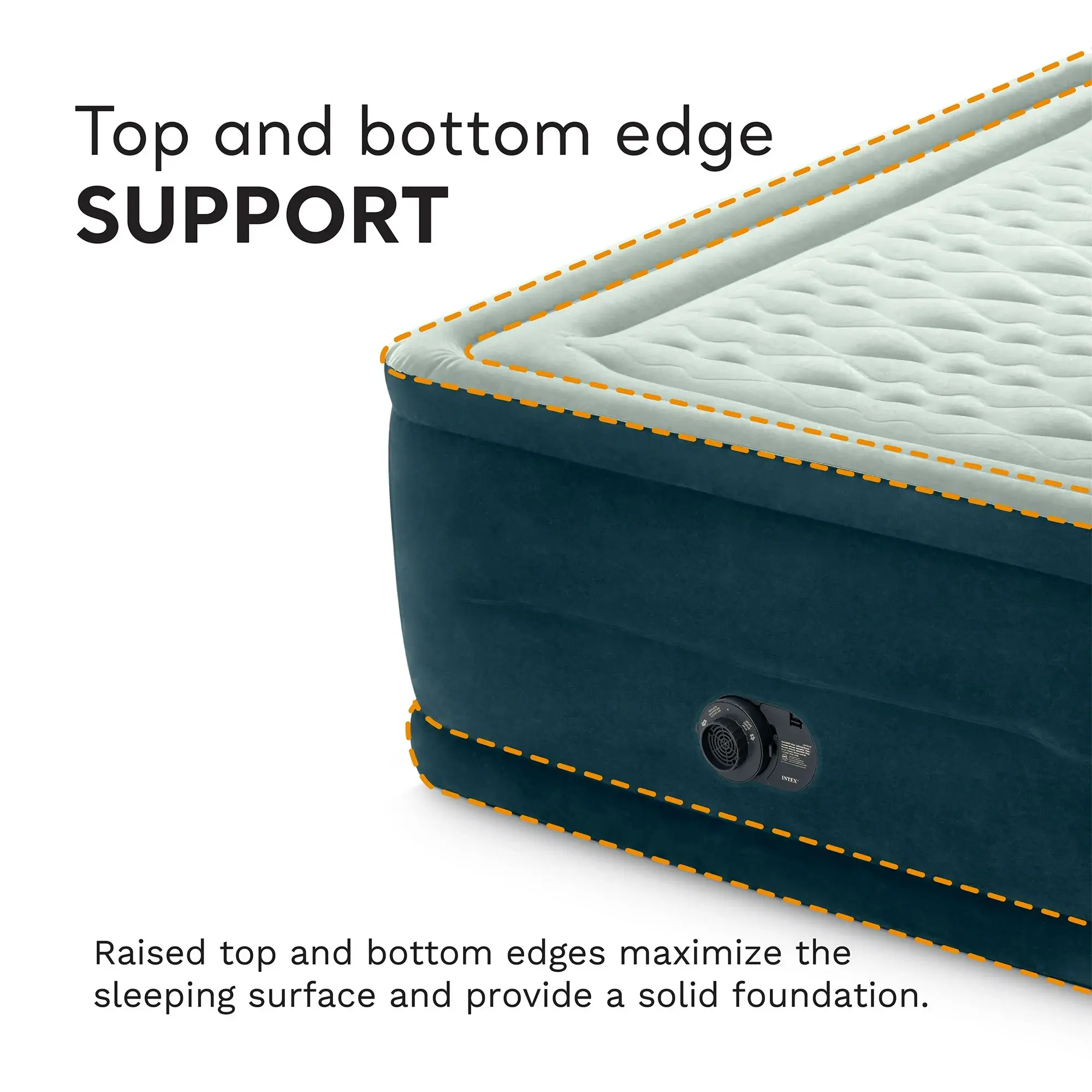·Pillow top air bed features a unique-edge construction for more sleeping space and mattress stability