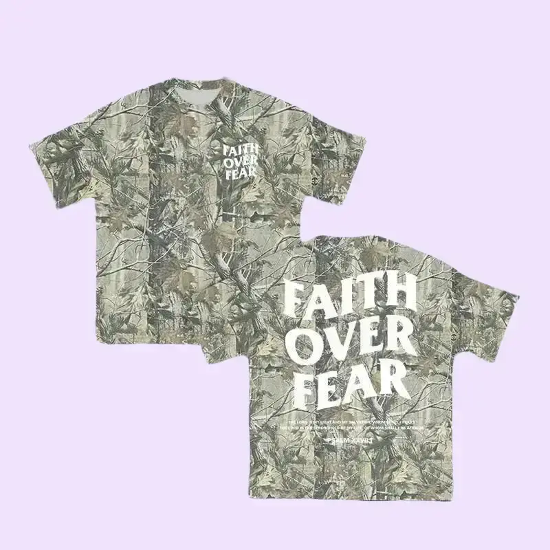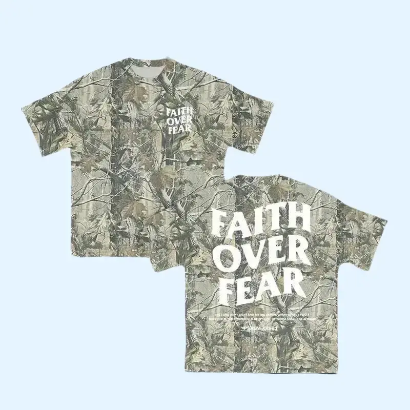 {Full Size S-5XL} Faith Over Fear Camo T-Shirt 3D Dead Leaves Print Christian Graphic Tee Unisex Short Sleeve Shirt for Men Women Hunting Outdoor Casual Streetwear Breathable Lightweight Cotton TikTok Shop US Trendy Outfit