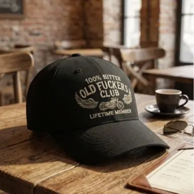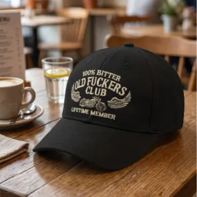 5. Bitter Old Fuckers Club Hat 2026 – Washed Vintage Embroidered Dad Cap, Motorcycle Wing Lifetime Member Black Hat, Adjustable Cotton Baseball Cap