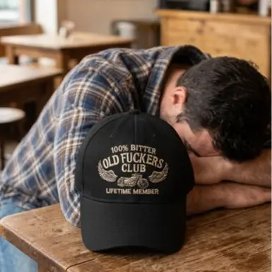 Bitter Old Fuckers Club Hat 2026 – Washed Vintage Embroidered Dad Cap, Motorcycle Wing Lifetime Member Black Hat, Adjustable Cotton Baseball Cap