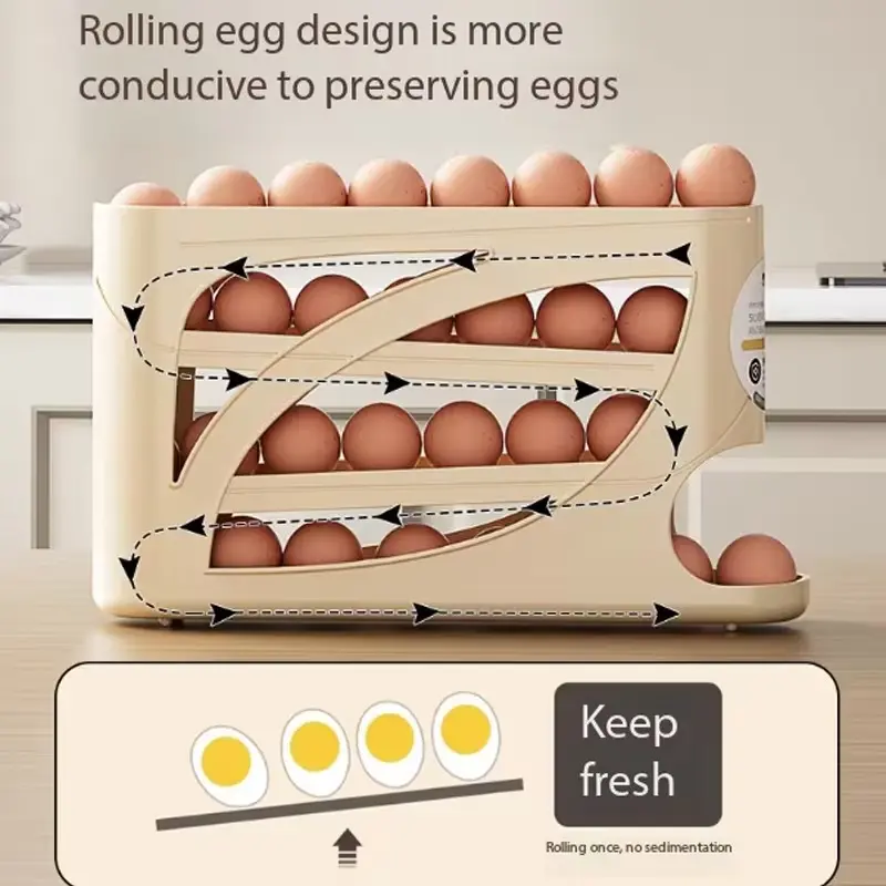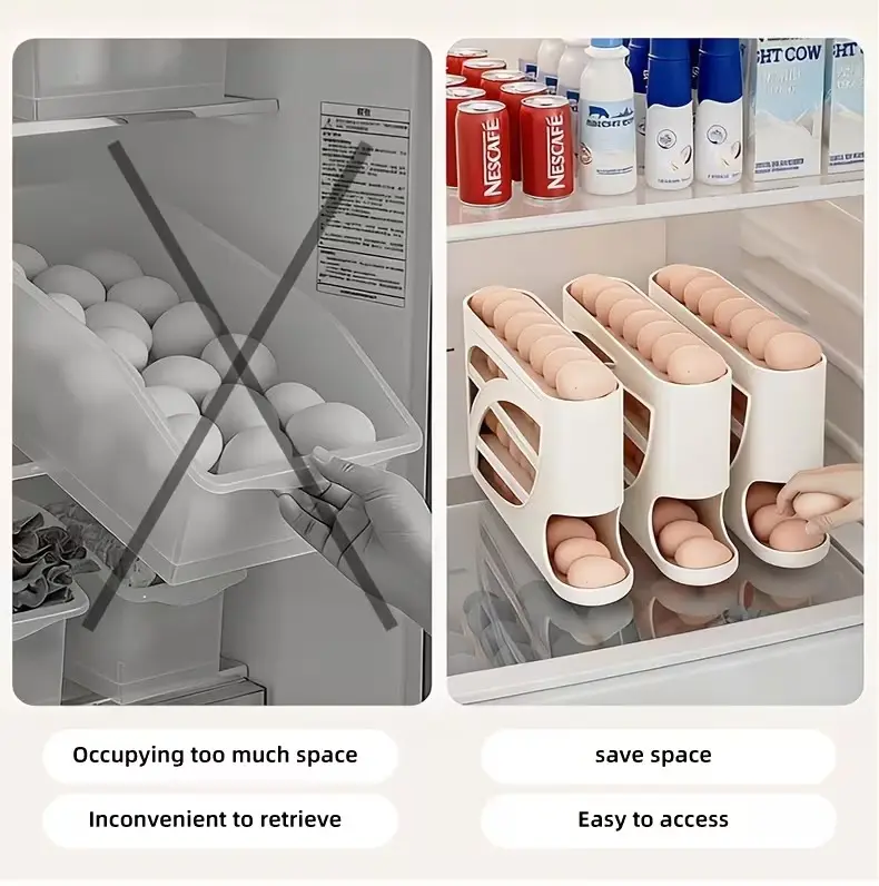 Introducing the Self Rolling Egg Dispenser — the smartest way to store, organize, and access your eggs every single day! Whether it's your fridge shelf or kitchen countertop, this egg holder keeps everything neat, fresh, and always within reach.
