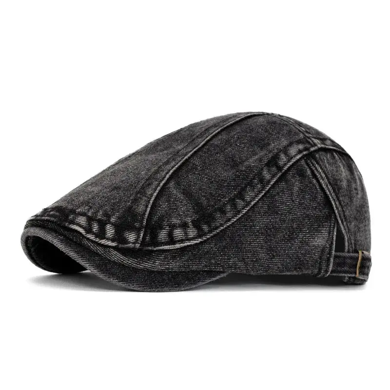 Retro denim beret hat, British literary newsboy forward hat, Japanese solid color washed old duckbill hat, adjustable