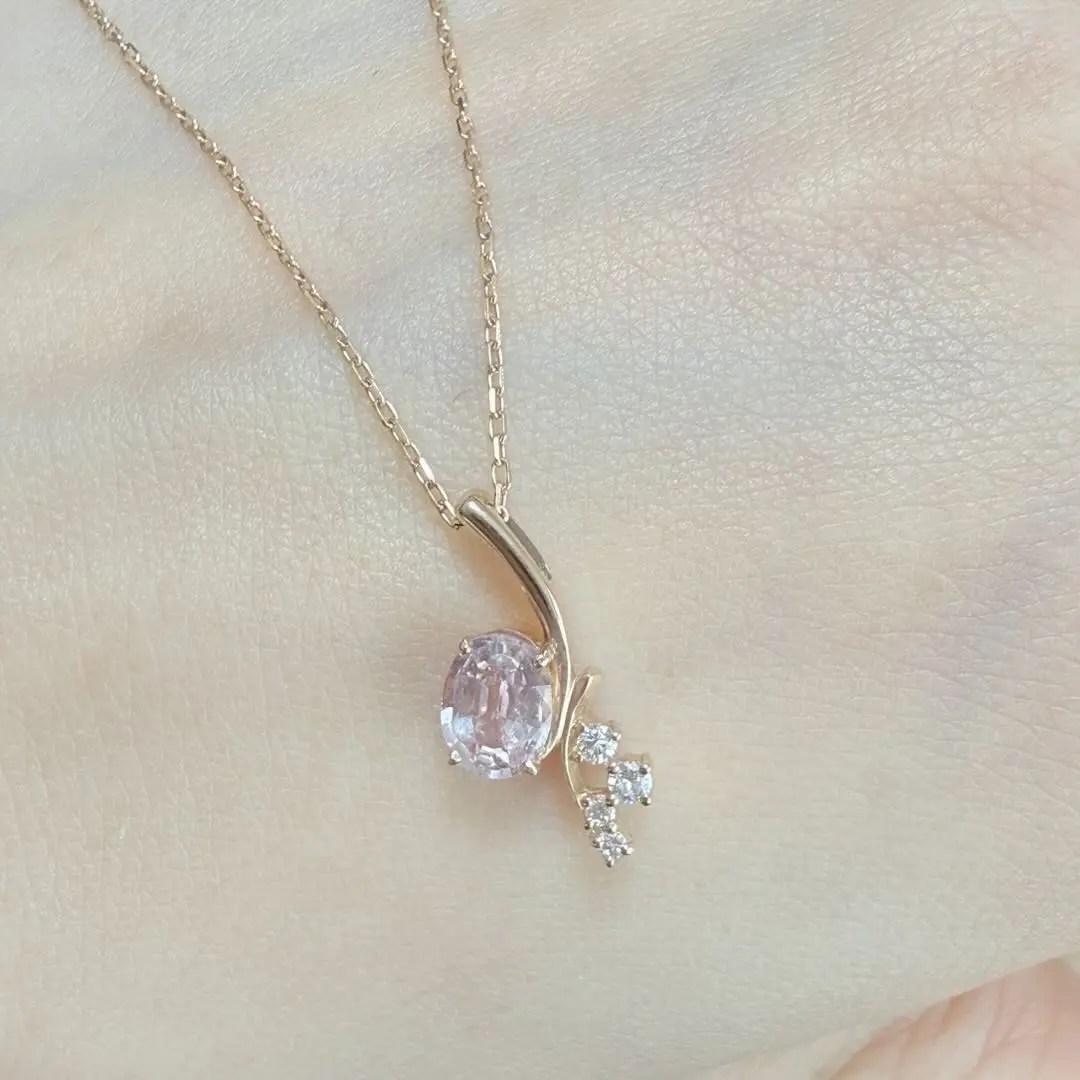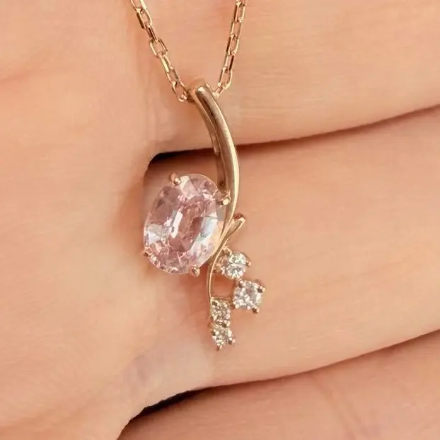 RFM1305 18K Pink Gold Padparadscha / Diamond 0.592ct + 0.05ct Necklace 0407