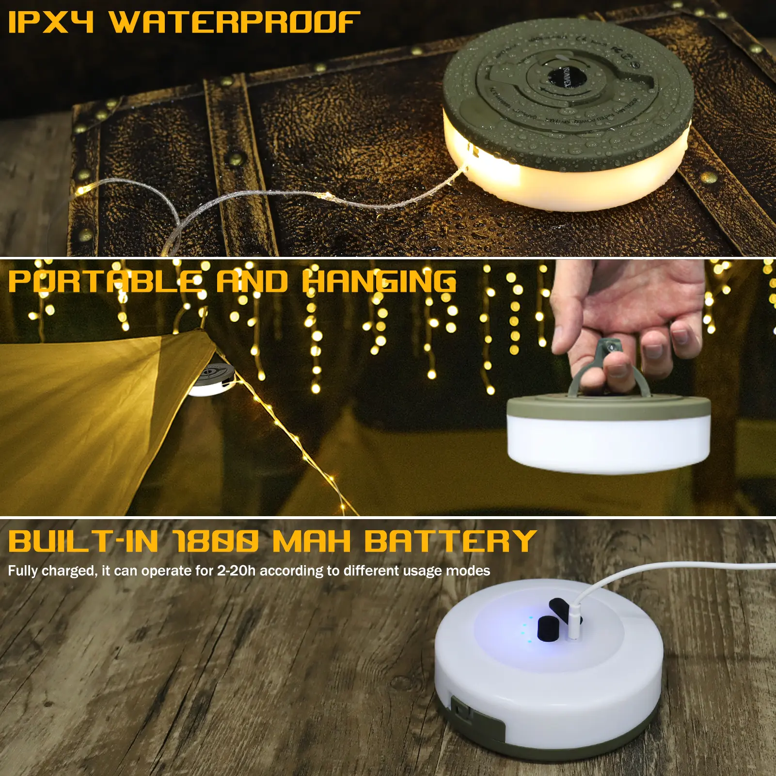 ·Unique 2-in-1 design combines a bright camping lantern and a decorative fairy string light, with 2 independent switches for separate control.