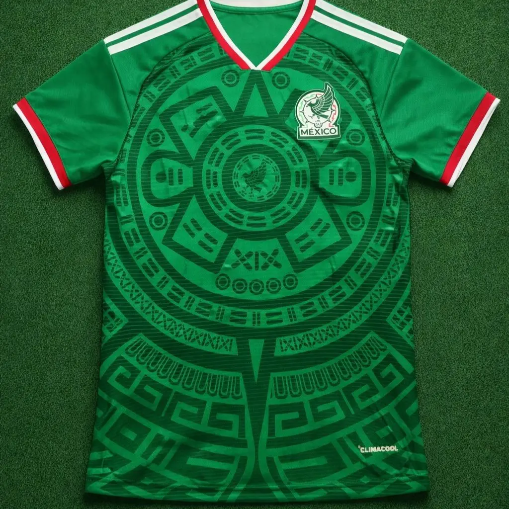 Mexico Soccer Jersey Embroidered Logo Jersey, Aztec Calendar Football Shirt, Green Mexico Fan Jersey, Custom Embroidery Foothball Jersey