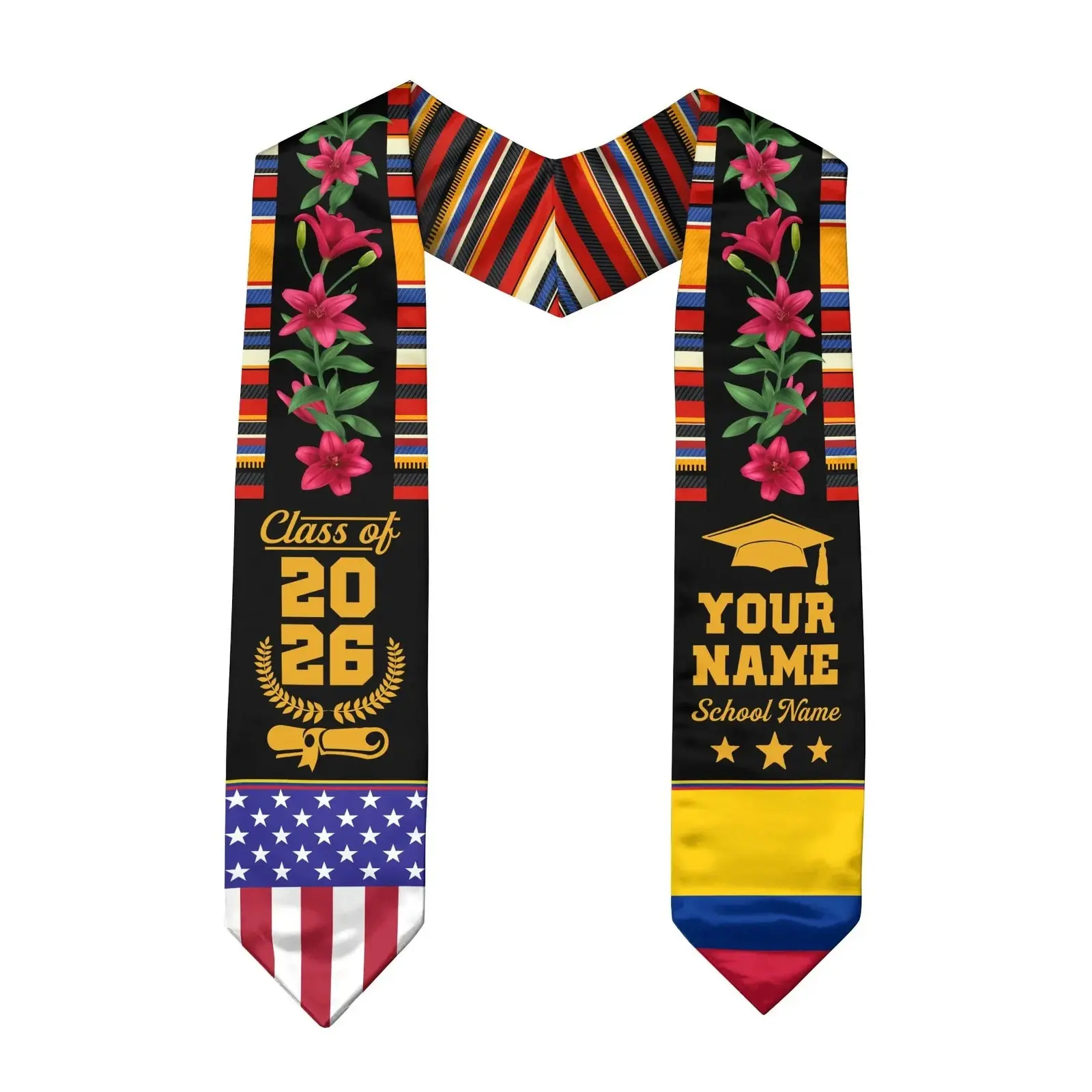 graduation with this vibrant and festive Mexican-themed stole. It represents your hard work, dedication, and outstanding achievements, making it an essential accessory for Mexican graduates to honor their heritage.