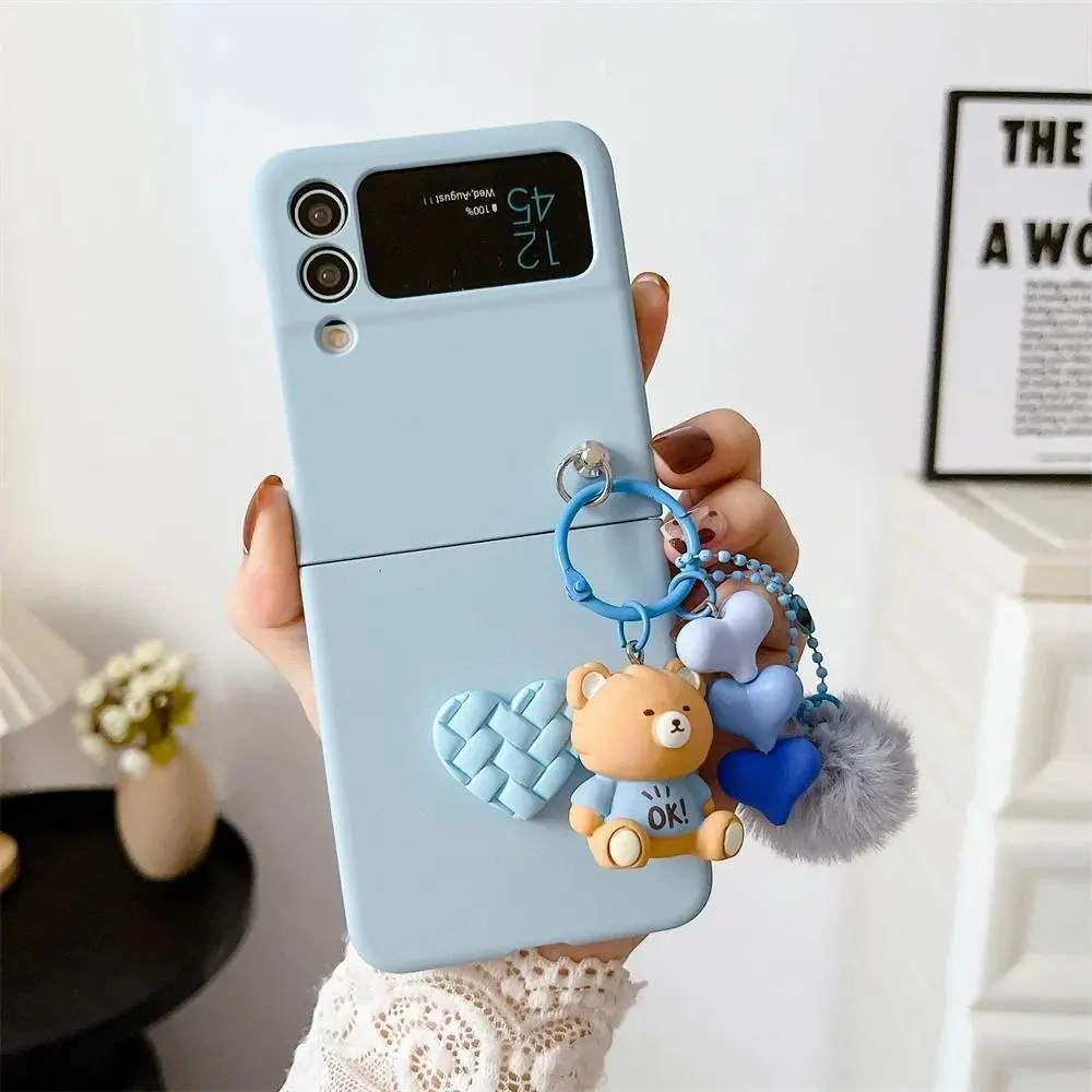 5. For Galaxy Z Flip6 Cartoon Bear Plush Heart Folding Case for Samsung Z Flip7 Zflip5 Z Flip 3 4 5 6 7 Slim Cover with Lanyard