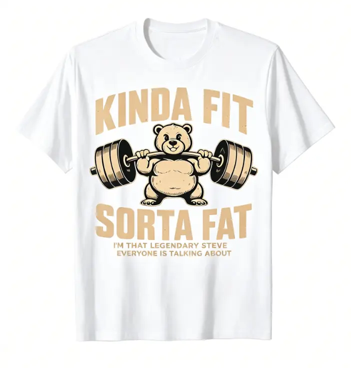 Cotton Men's Kinda Fit Sorta Fat Gym Bear Print T-Shirt Funny Workout Casual Short Sleeve Tee
