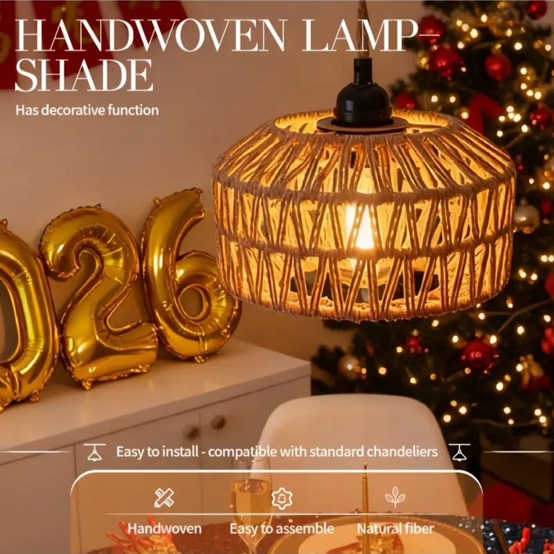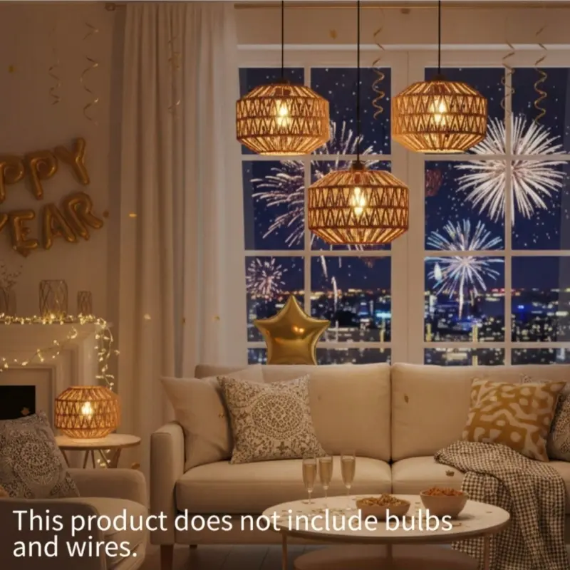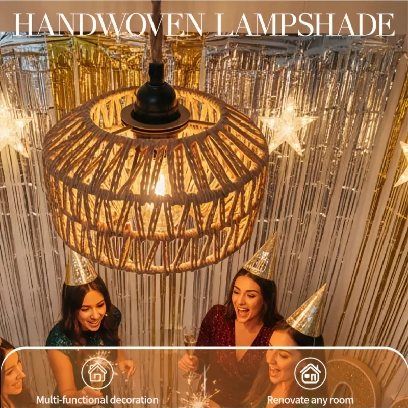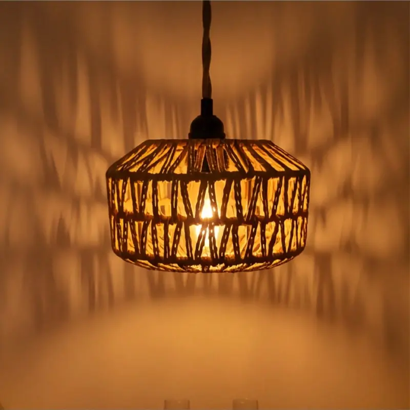 Bohemian-style lampshades for bedroom ceilings, floor lamps, or table lamps, made of woven wicker and iron