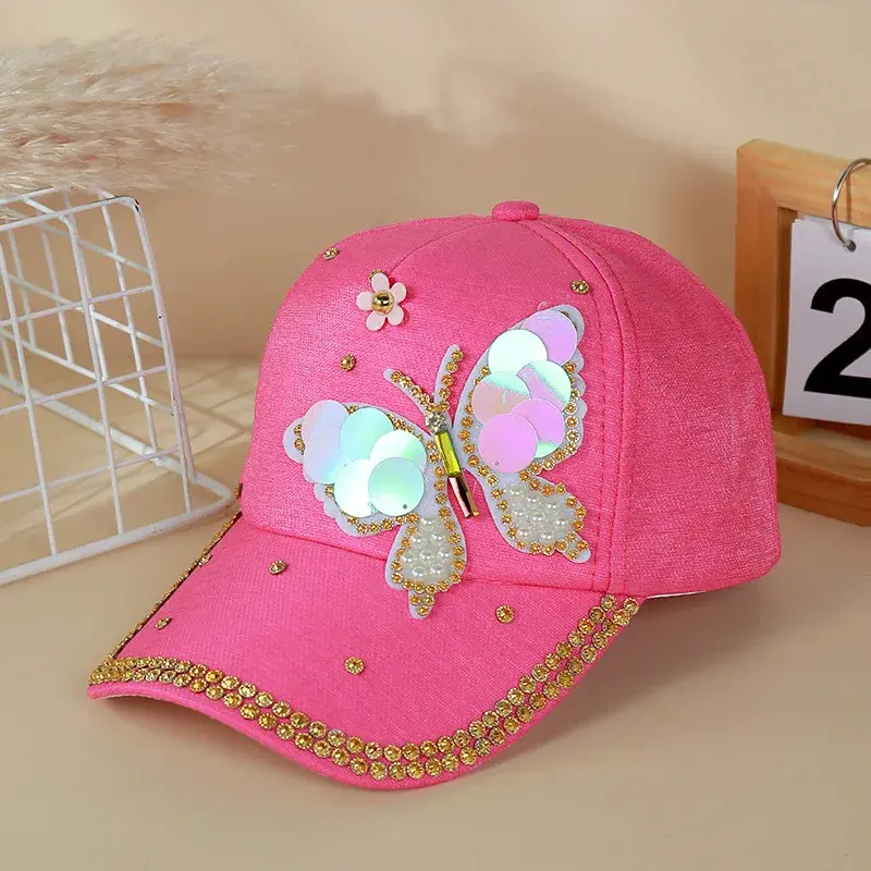 Women's Glitter Sequin Butterfly Baseball Cap, Adjustable Breathable Sparkling Sun Visor Hat For Outdoor