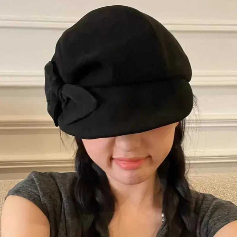 Black Bow Beret Hat for Women Spring Autumn Winter British Style Octagonal Newsboy Hat Artist Painter Soft Brim Peaked Cap