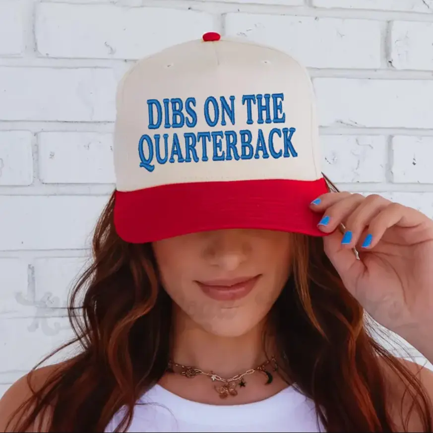 Dibs on the Quarterback Hat, Custom Embroidered Hat, Football Trucker Hat, Embroidered Team Hat Gif
