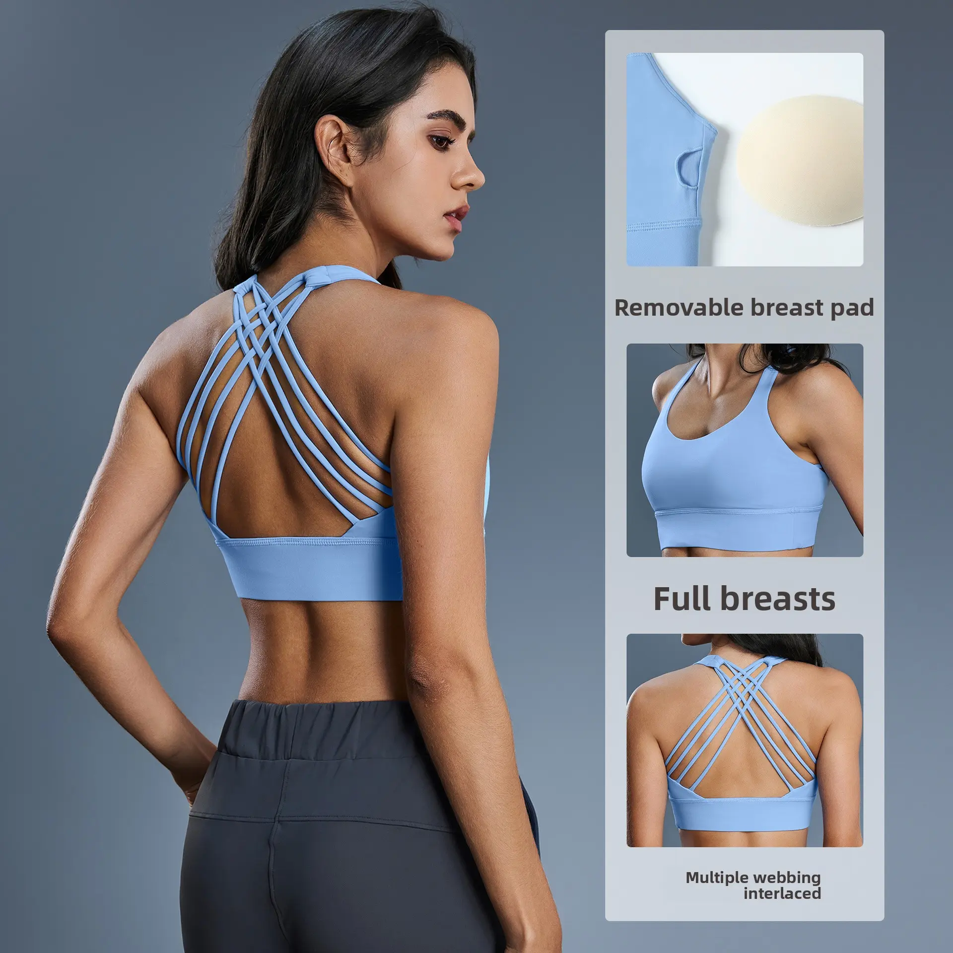 New Women's High-Impact Cross-Back Sports Bra, Shockproof Push-Up Support Fitness Bra