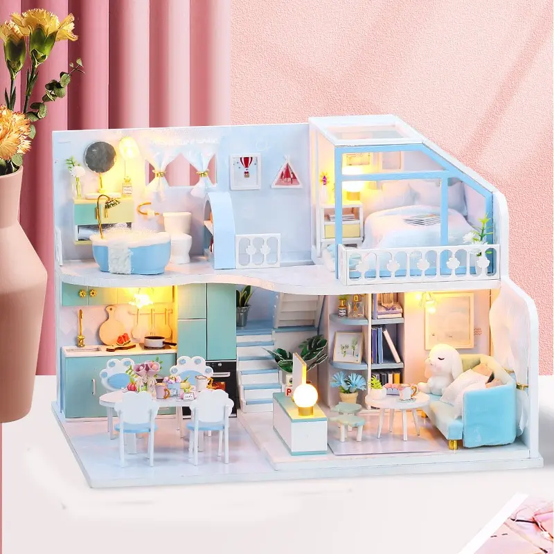 DIY Creative Attic Cottage — "Blue Serenity": A 3D Assembly Model. This makes for an exquisite birthday or holiday gift, as well as an ideal choice for crafting enthusiasts.
