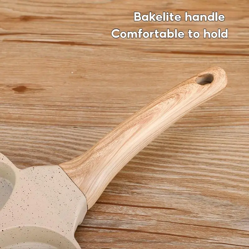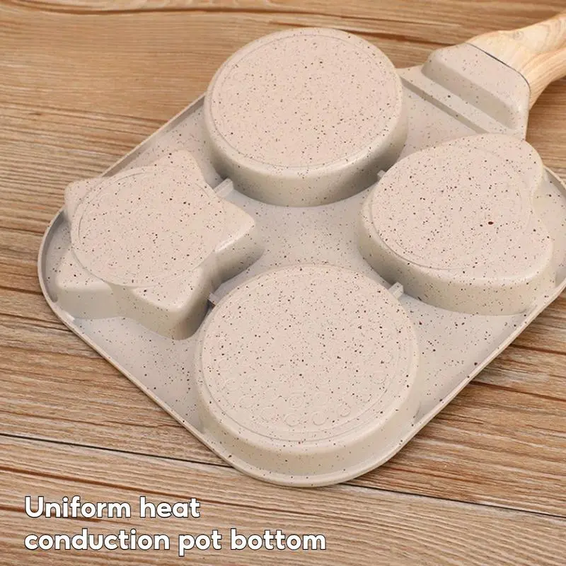 Make breakfast fun and effortless with this Non-Stick 4-Hole Heart-Shaped Pancake & Egg Frying Pan! Crafted with a wooden handle for safe, comfortable grip and granite-style nonstick coating, this small skillet is perfect for cooking eggs, omelets, toast, pancakes, crepes, and sandwiches.