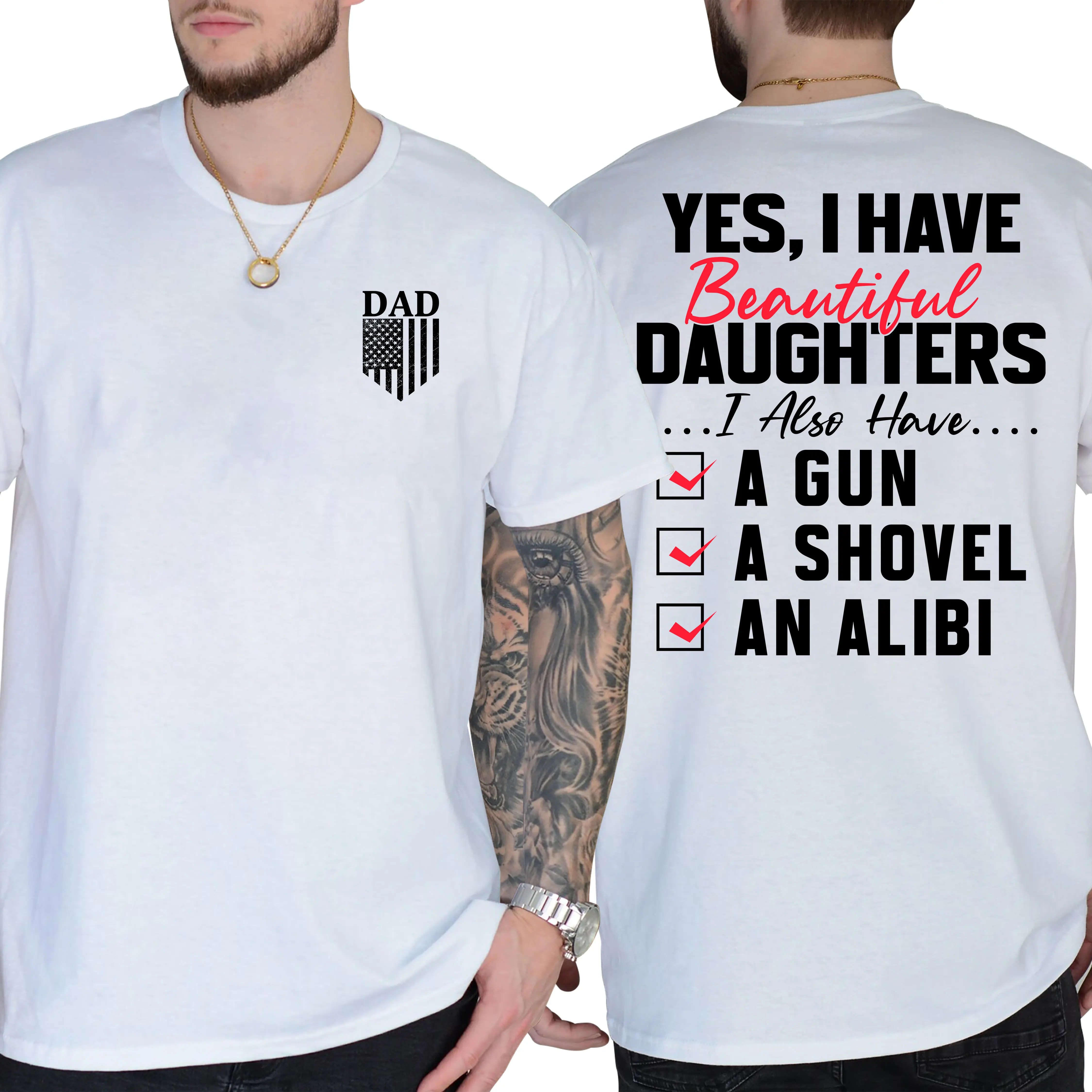 5. Yes I Do Have A Beautiful Daughter Gun Shovel Alibi T-Shirt, Short Sleeve Printed Graphic Shirt, Daily Casual Cotton Menswear