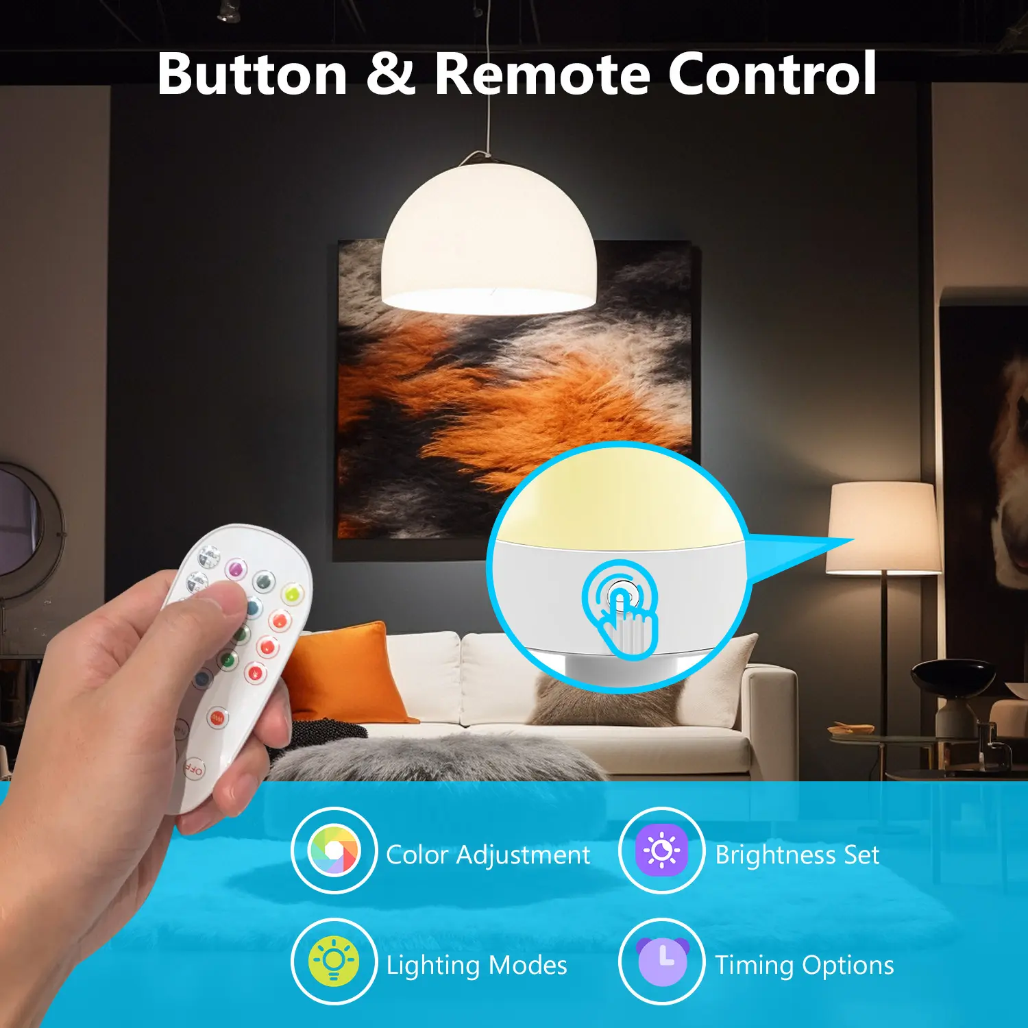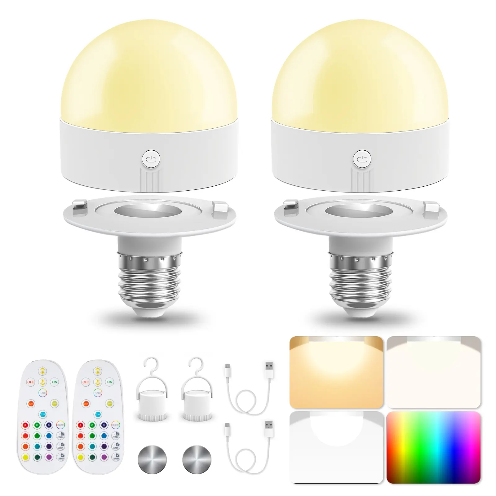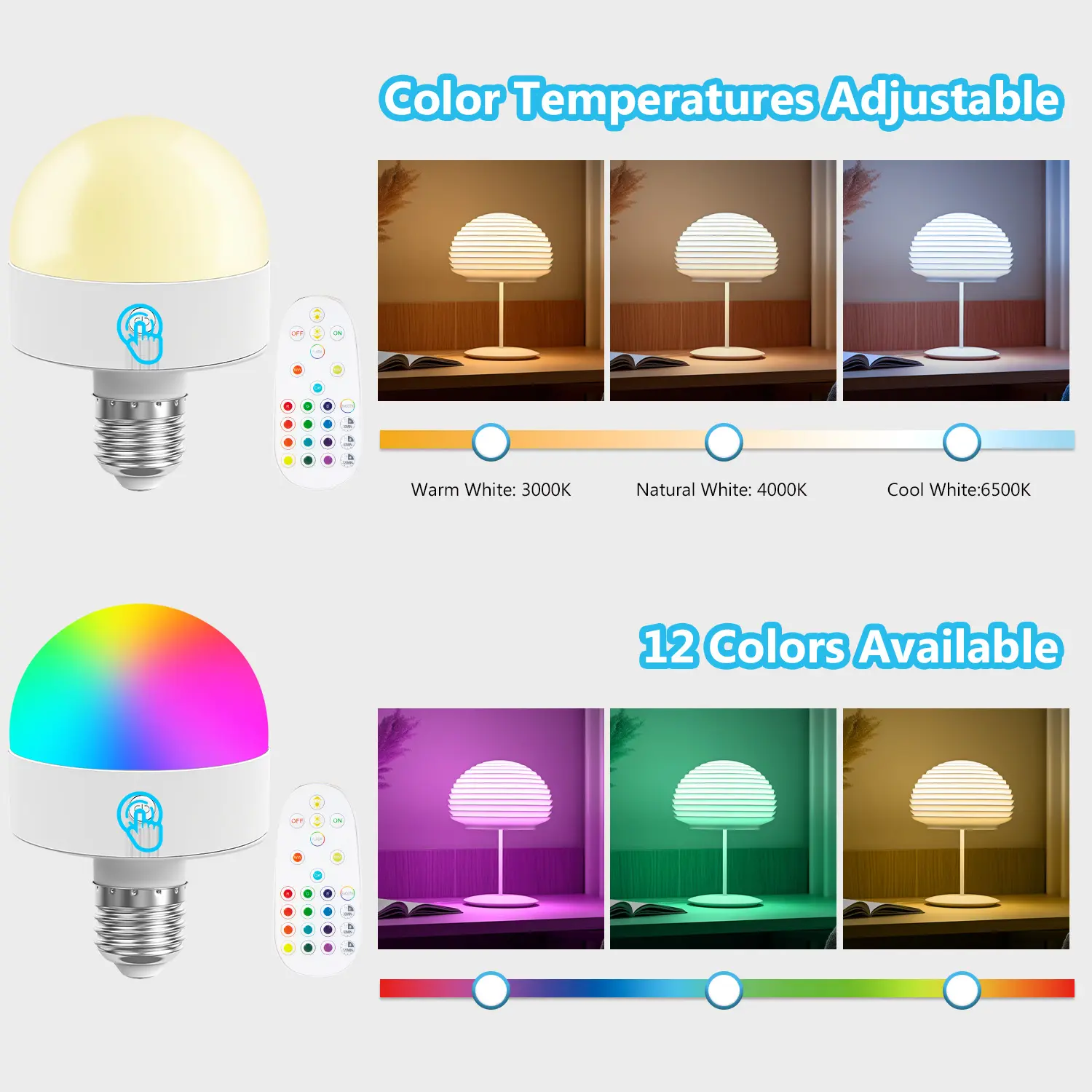 DAYBETTER E26 Rechargeable Light Bulb with Remote & Timer 3 Color Temperatures 12 RGB Colors Dimmable for Sconces Lamps Magnetic Non-Hardwired Fixture 5W 300 Lumens Type-C USB Charge