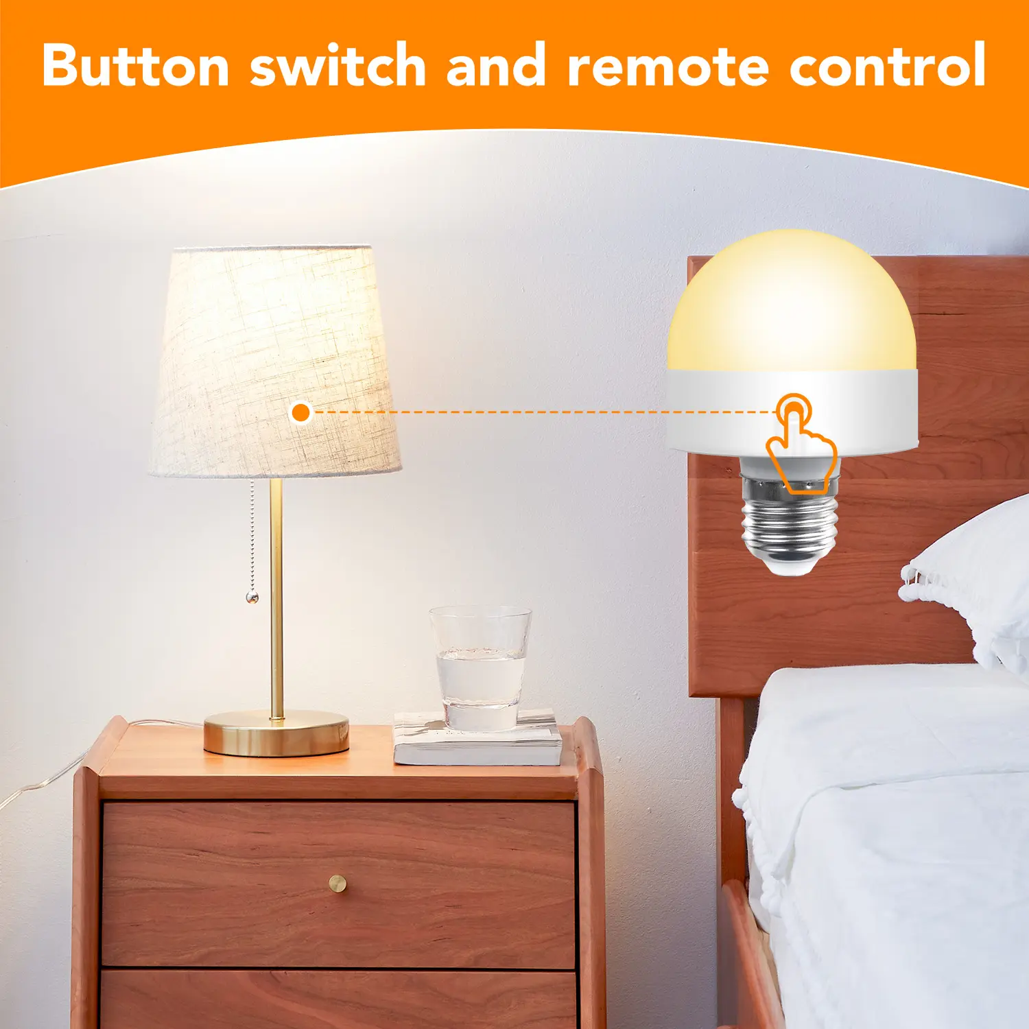【Dimmable Light Bulb with Remote Control and Timer】- Easy operation with included remote: on/off, adjustable brightness & warmth, 3 color temperatures (warm white/natural white/cool white), timer function. Ideal for hard-to-reach places.