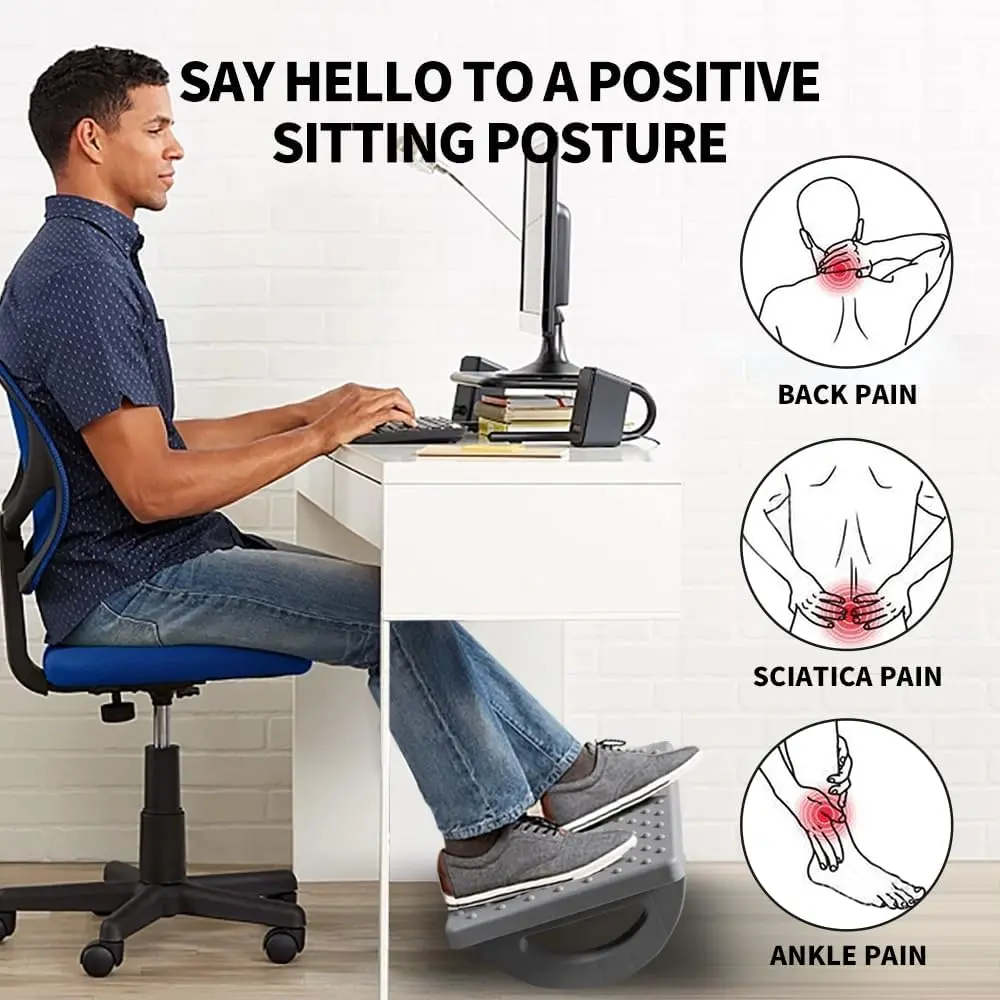 Enhance your comfort during long hours at your desk with this ergonomic foot rest designed to fit under your office or gaming desk.