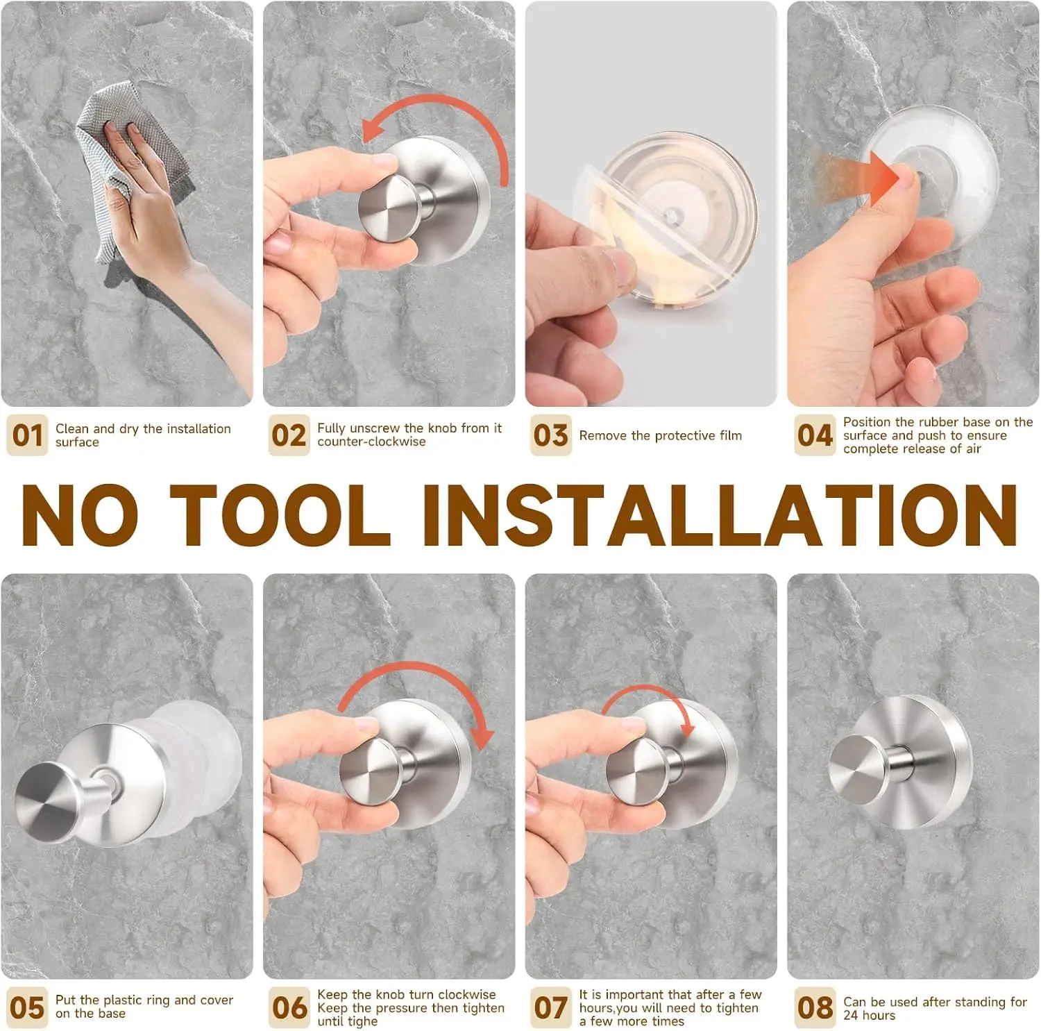 Easy Installation: No drilling or screws needed! Simply clean a smooth, non-porous surface, and these suction shower hooks will adhere instantly. The intuitive installation process makes it ideal for renters, allowing you to set up bathroom hooks for towels or robes in seconds. The bottom of the product is sticky, providing a strong hold without compromising its reusability. it is easy to reposition and remove without leaving any residue or damaging surfaces, Make sure to follow the instructions!