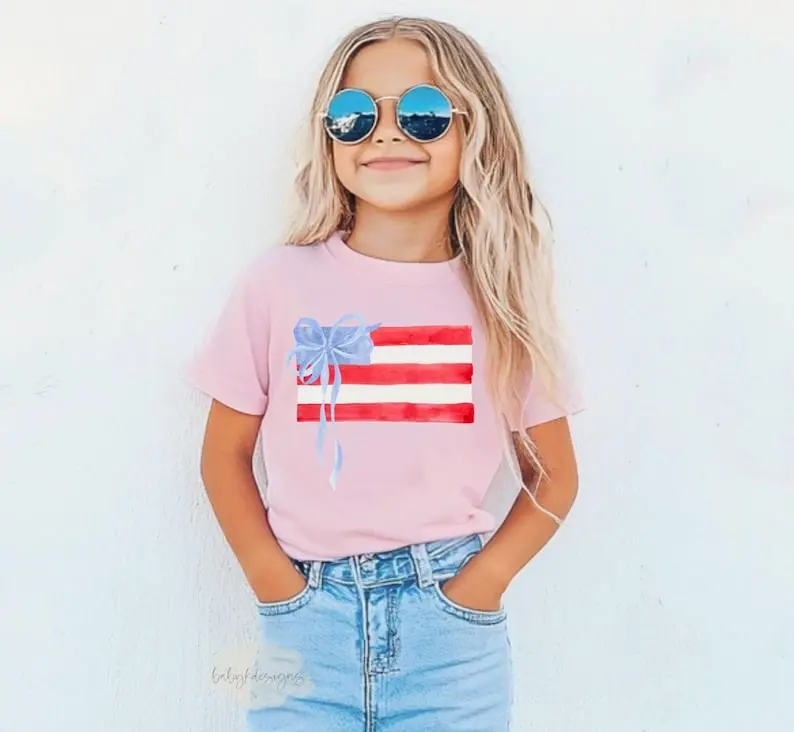 Coquette Flag Shirt, Girls Coquette 4th of July Shirt,  4th of July Shirt, Patriotic Shirt, Coquette Bow Shirt, Coquette America Tee