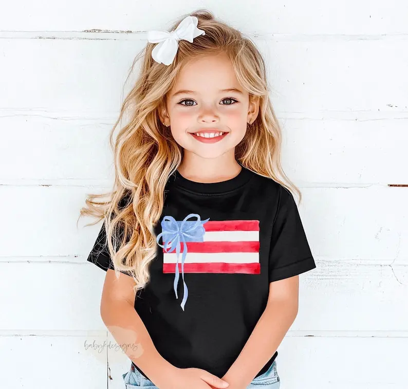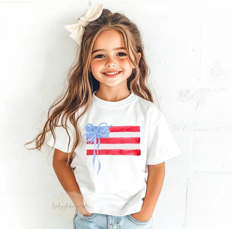 Coquette Flag Shirt, Girls Coquette 4th of July Shirt, 4th of July Shirt, Patriotic Shirt, Coquette Bow Shirt, Coquette America Tee