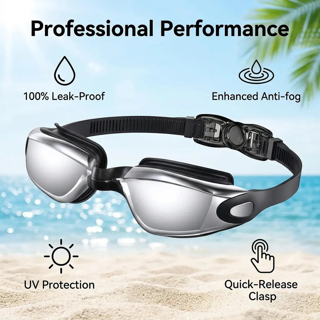 Stay clear and protected with Harkapy Swimming Goggles. These goggles are designed for adults, men, and women, perfect for outdoor swimming, pools, beaches, and diving. They feature anti-fog and UV protection, ensuring a comfortable and safe experience. The quick-release clasp adds convenience, making it easy to adjust and secure the goggles.