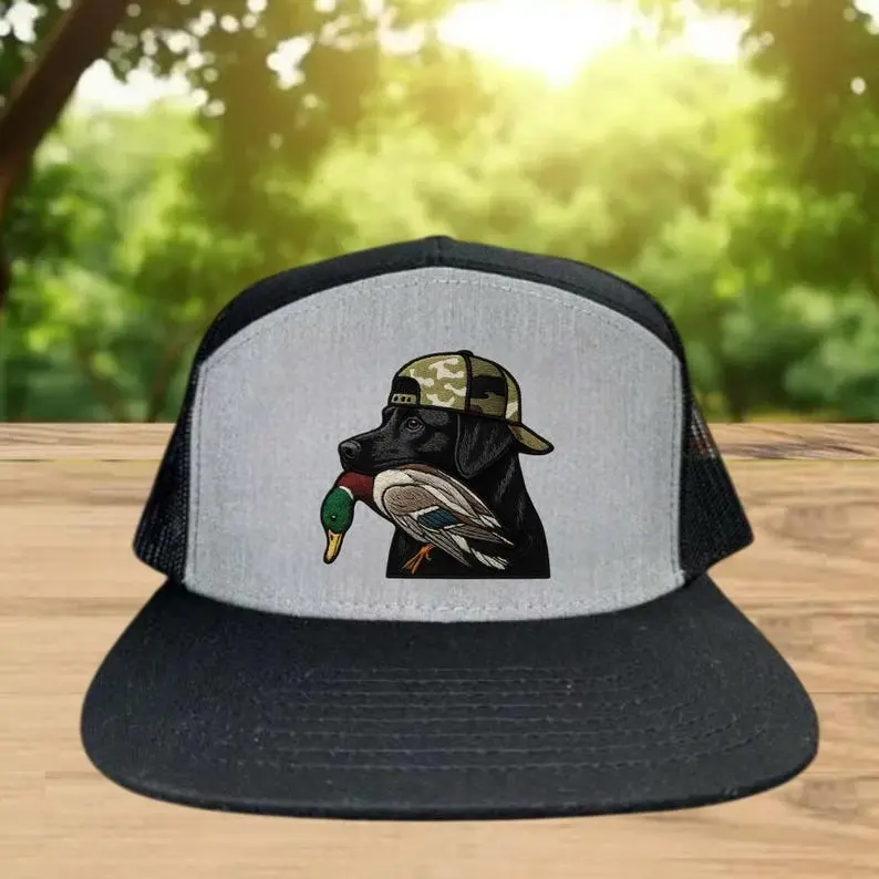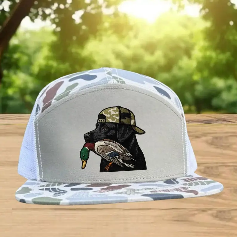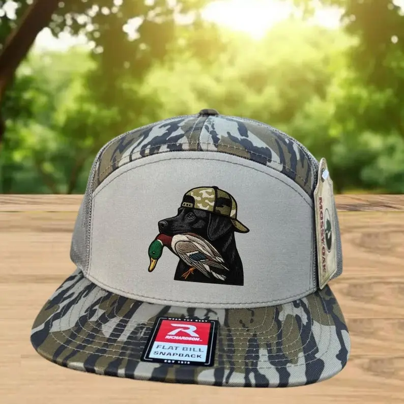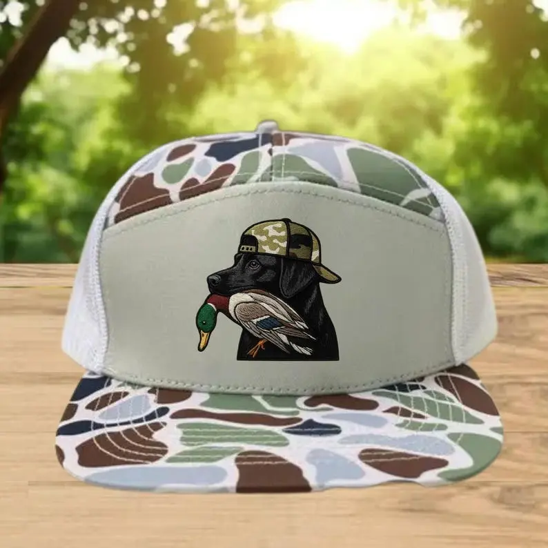 Black Lab Mallard Duck Embroidered Patch Camo Hat | Outdoor Waterfowl Hunting Snapback Cap