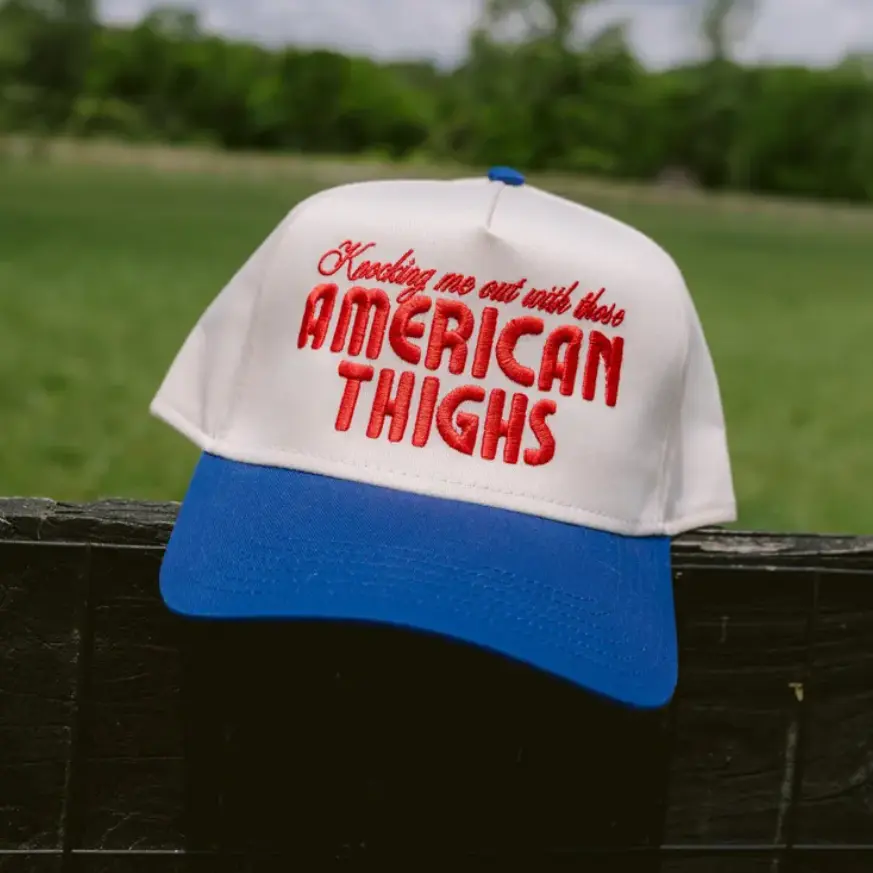 Knocking Me Out With Those American Thighs Embroidered Hat Baseball Cap 4th of July Gif