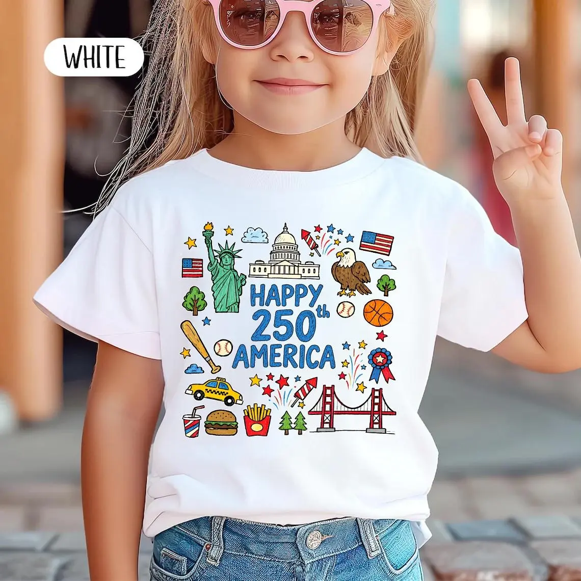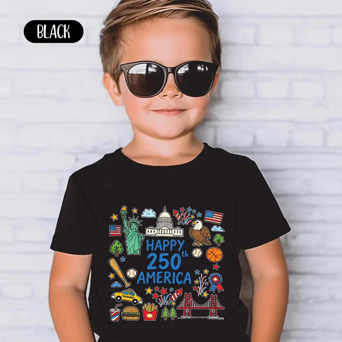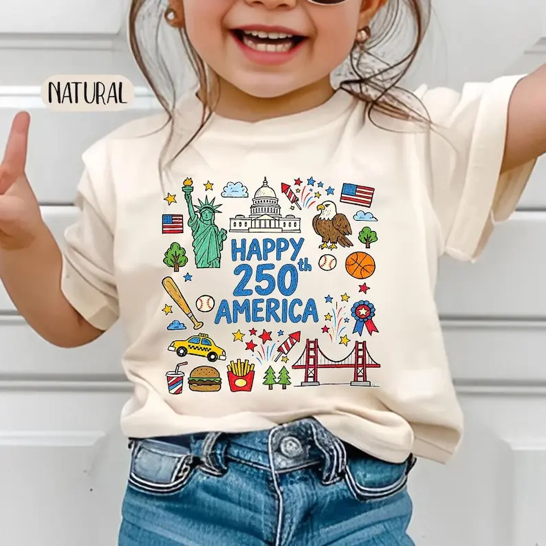 5. Happy 250 T-Shirt, 1776-2026 USA 250th Anniversary Shirt, Doodle Patriotic USA Tee