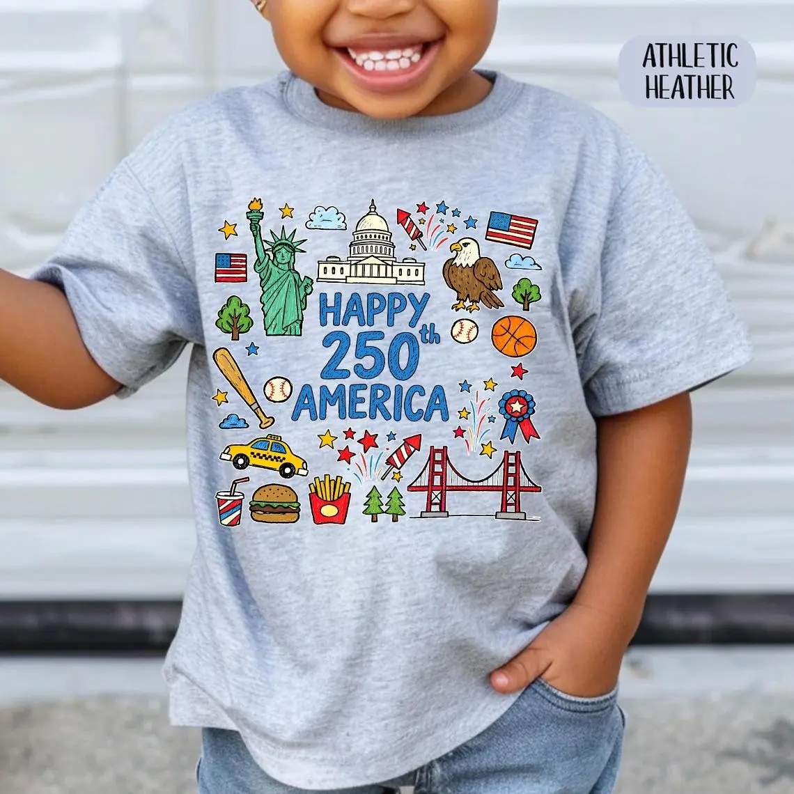 Happy 250 T-Shirt, 1776-2026 USA 250th Anniversary Shirt, Doodle Patriotic USA Tee