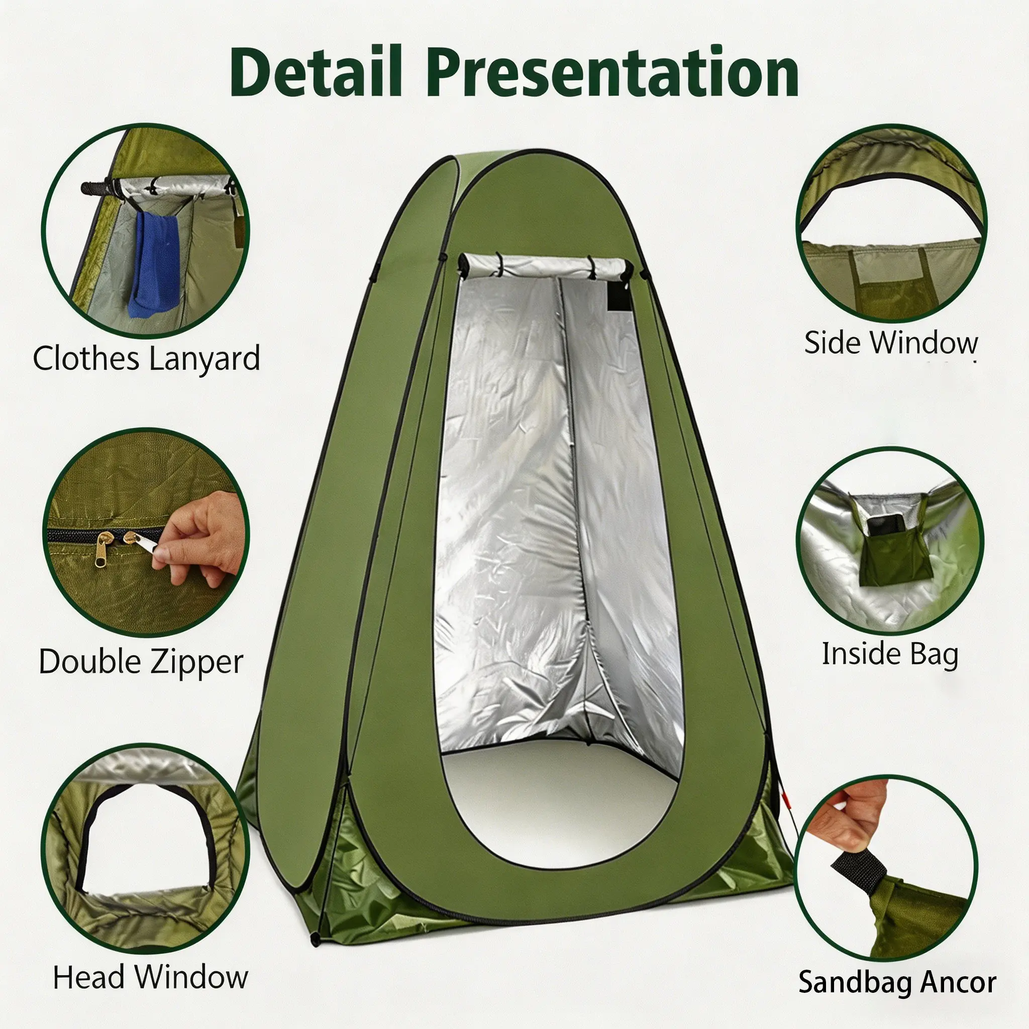 Pop-up shower tent, portable instant changing tent, with ventilation window and carrying bag, private bathroom toilet suitable for beach, camping and outdoors