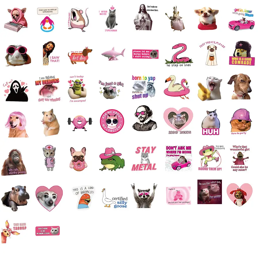 ·[50 Pink Aesthetic Designs]Dive into the ultimate pink vibe!This pack features 50 unique, non-repeating stickers bursting with trendy pink preppy designs, funny quotes, and cute Y2K elements.Perfect for adding a pop of color and personality to your everyday life.