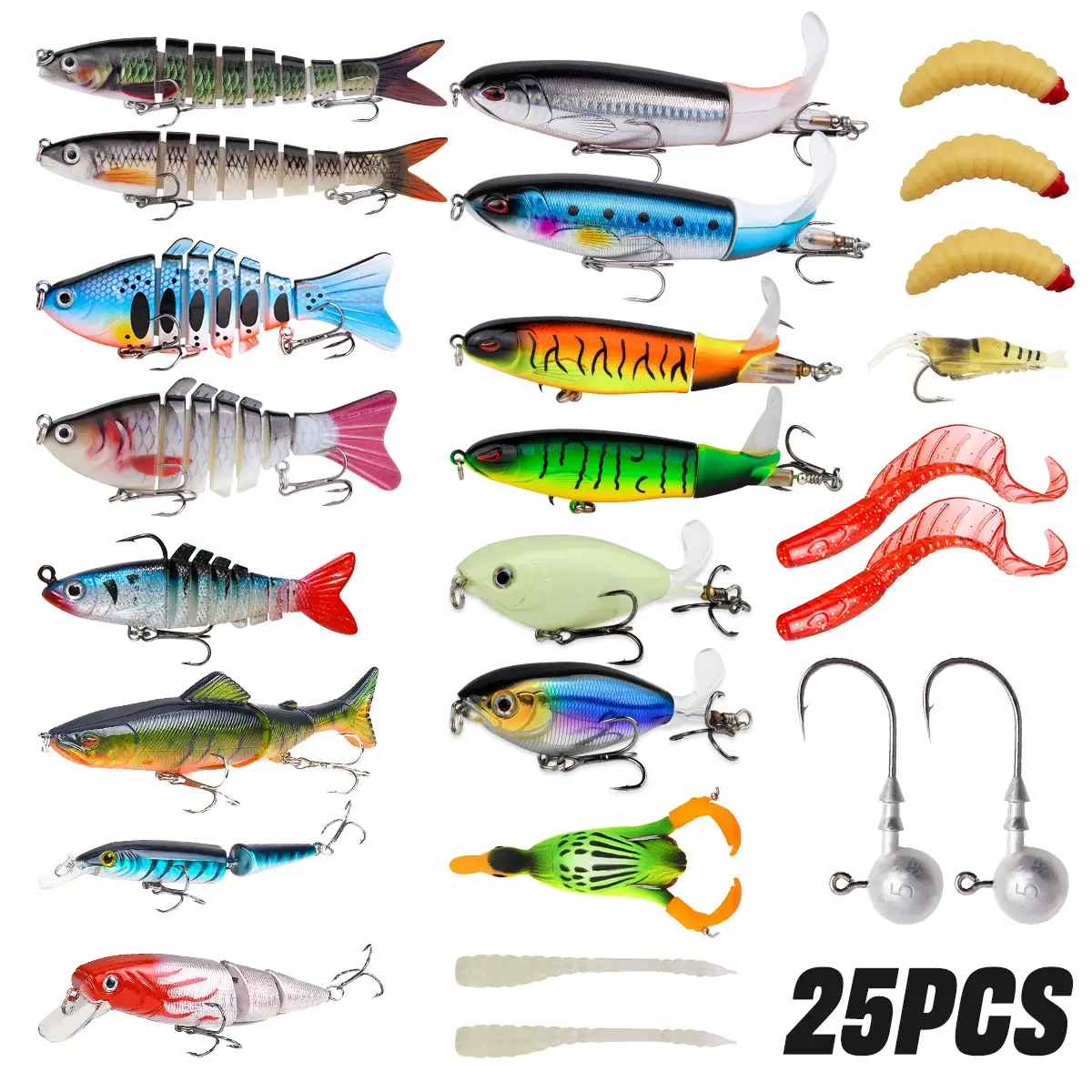 25pcs/set Multi Section Fish Top Water Propeller Bait Simulation Duck Decoy Frog Accessory Set for Sea Bass Freshwater Fishing