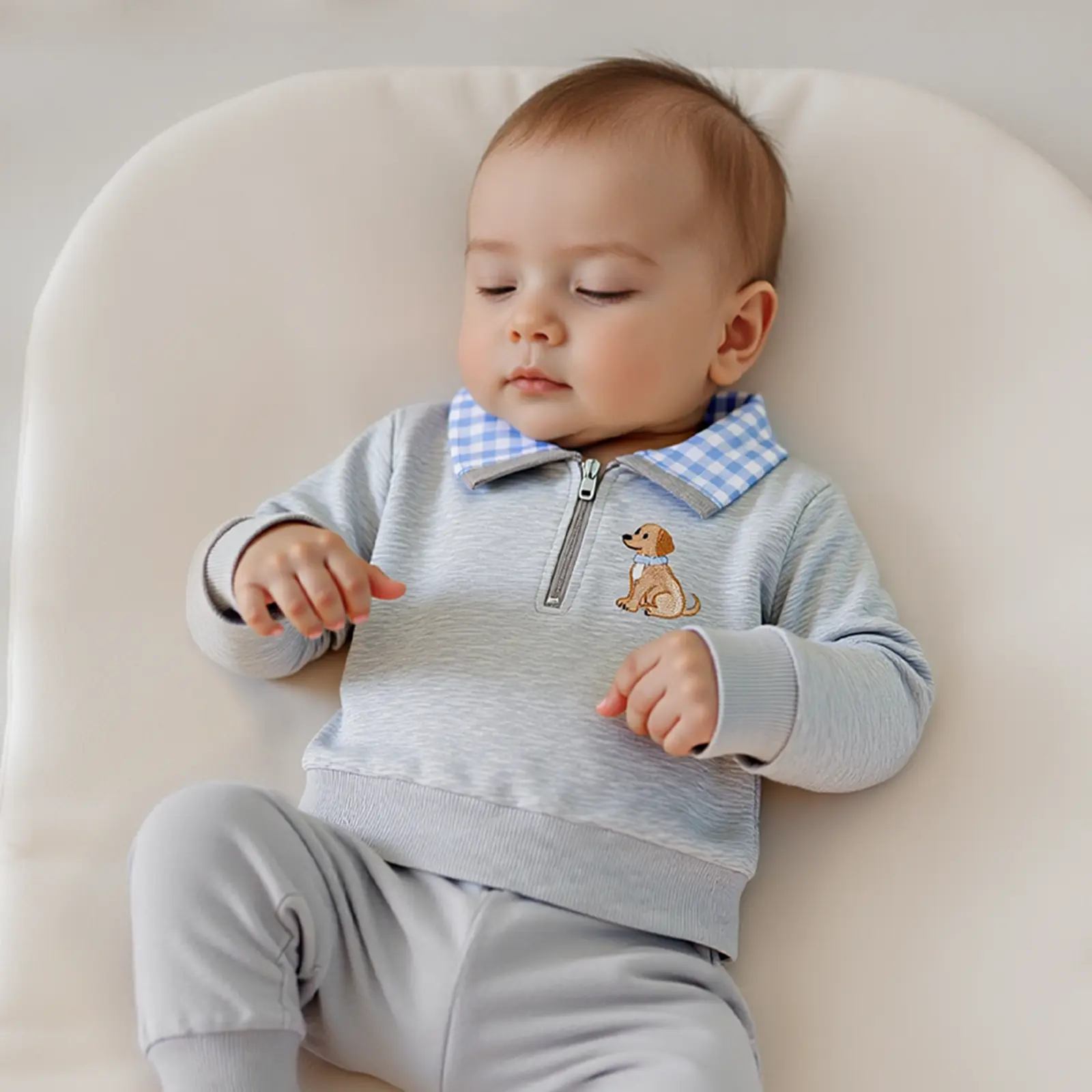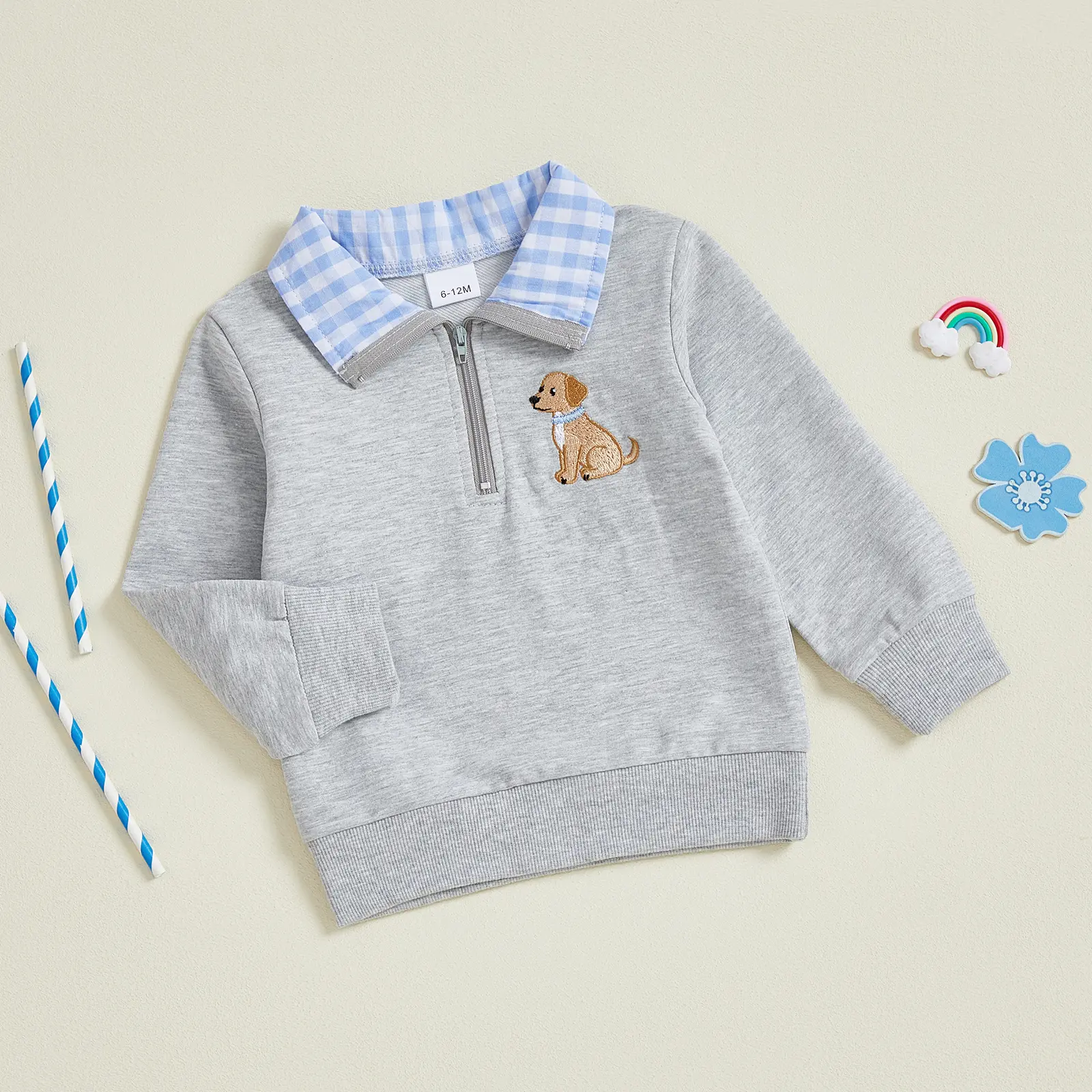 Toddler Baby Boy Sweatshirt Duck Embroidered Half Zip-up Lapel Neck Pullover Tops Cute Farm Clothes
