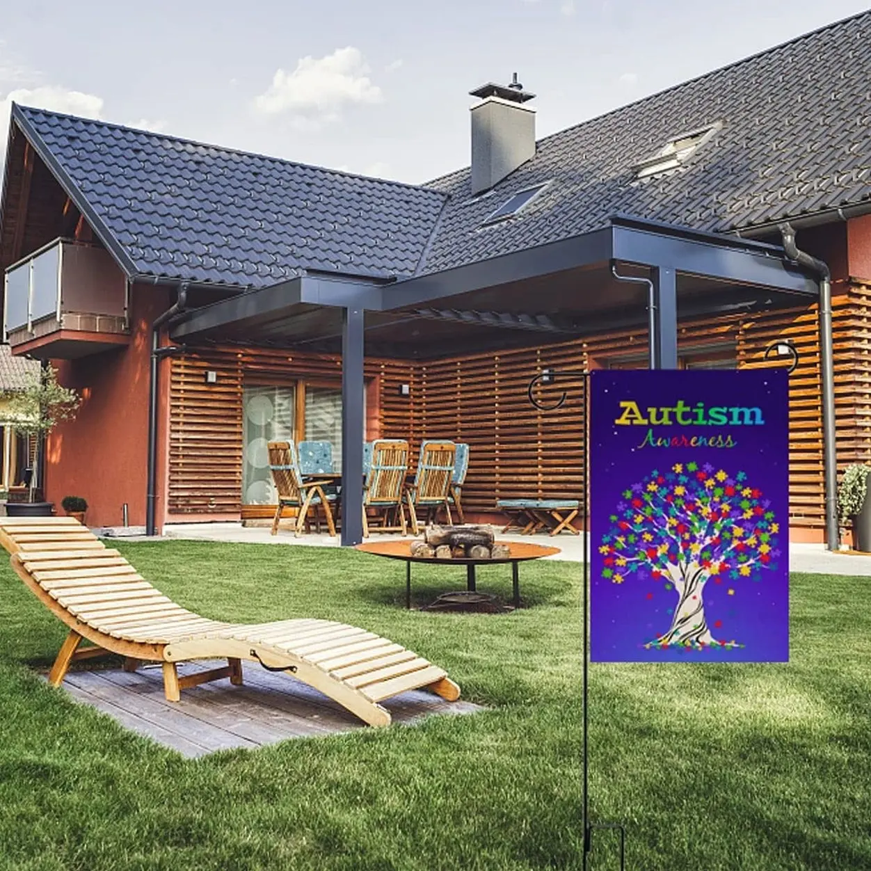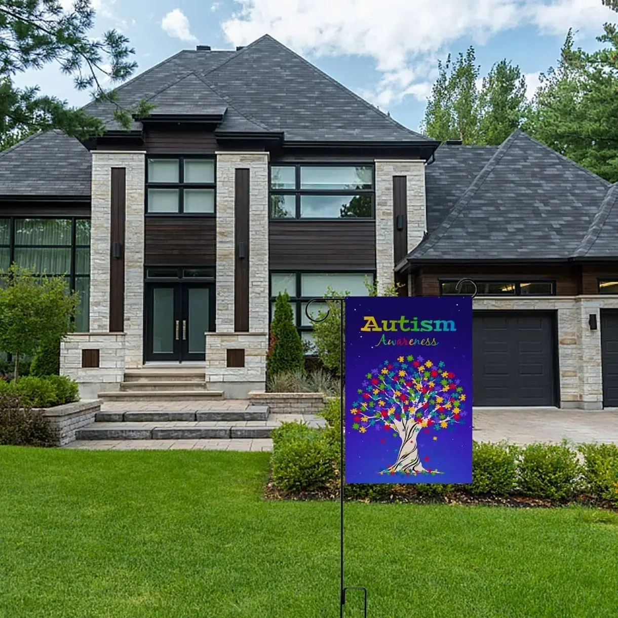 Autism Awareness Garden Flag, Puzzle Piece Inspirational Support Yard Sign, Colorful Tree House Decor.
