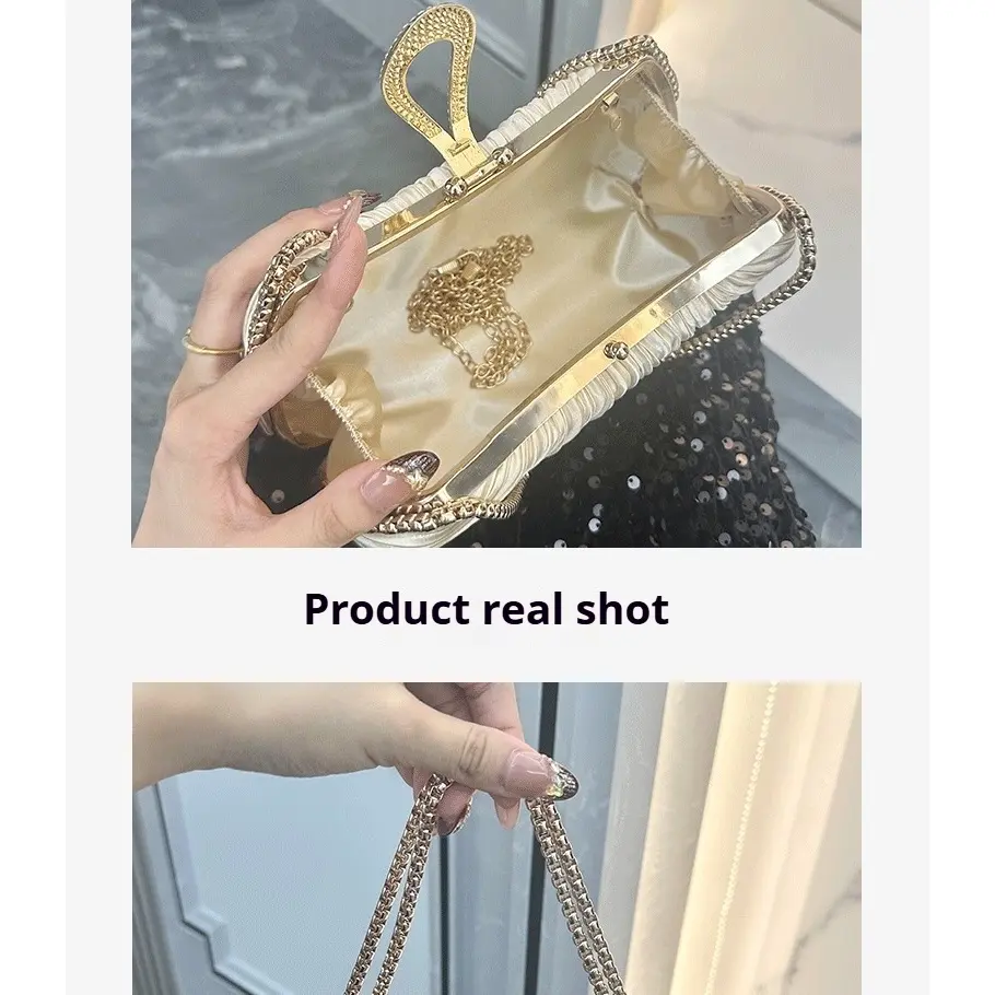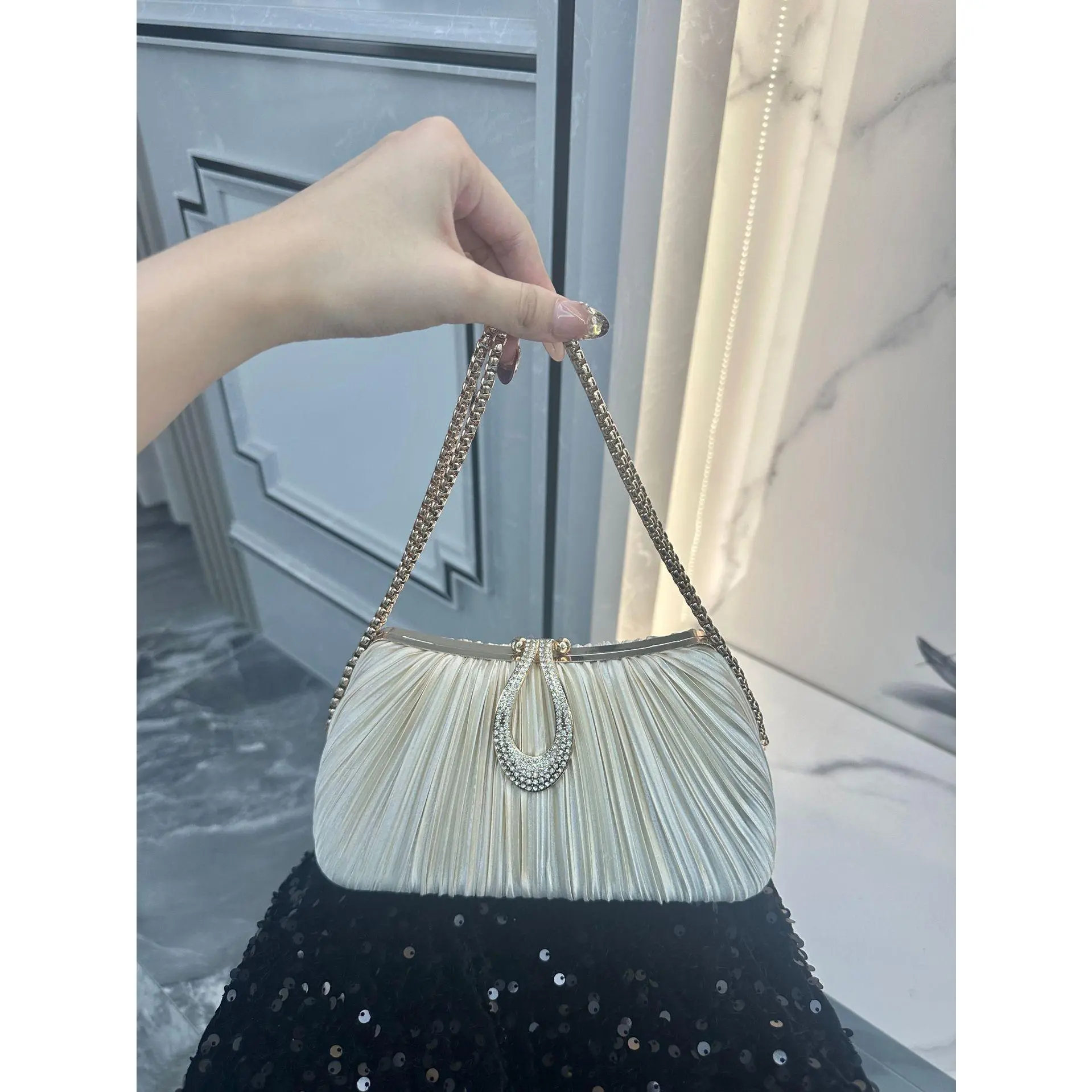 Pleated Solid Color Elegant Cheongsam Matching Evening Clutch Top Handle Bag for Wedding Banquet Party Prom Formal Events Fashion Versatile Luxury Bridal Purse with Timeless Style Sophisticated Design