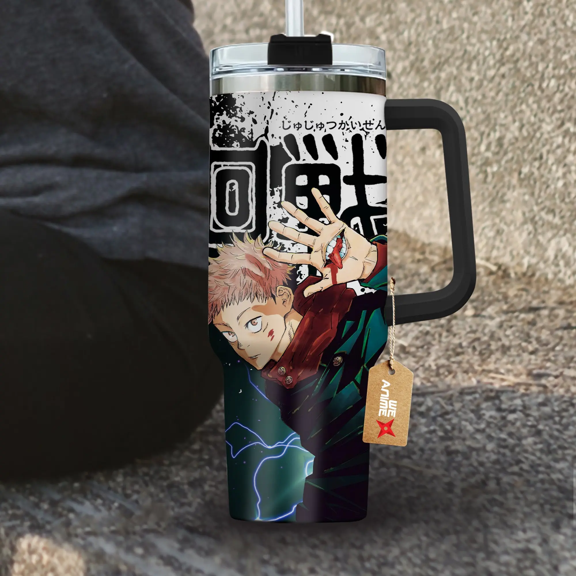 STORMMECH- Yuji 40oz Handle Tumbler – JJK Stainless Steel Travel Mug, Anime Inspired Vacuum Insulated Cup, Large Iced Coffee Tumbler, Manga Fighter Drinkware, Otaku Gift for Him Her