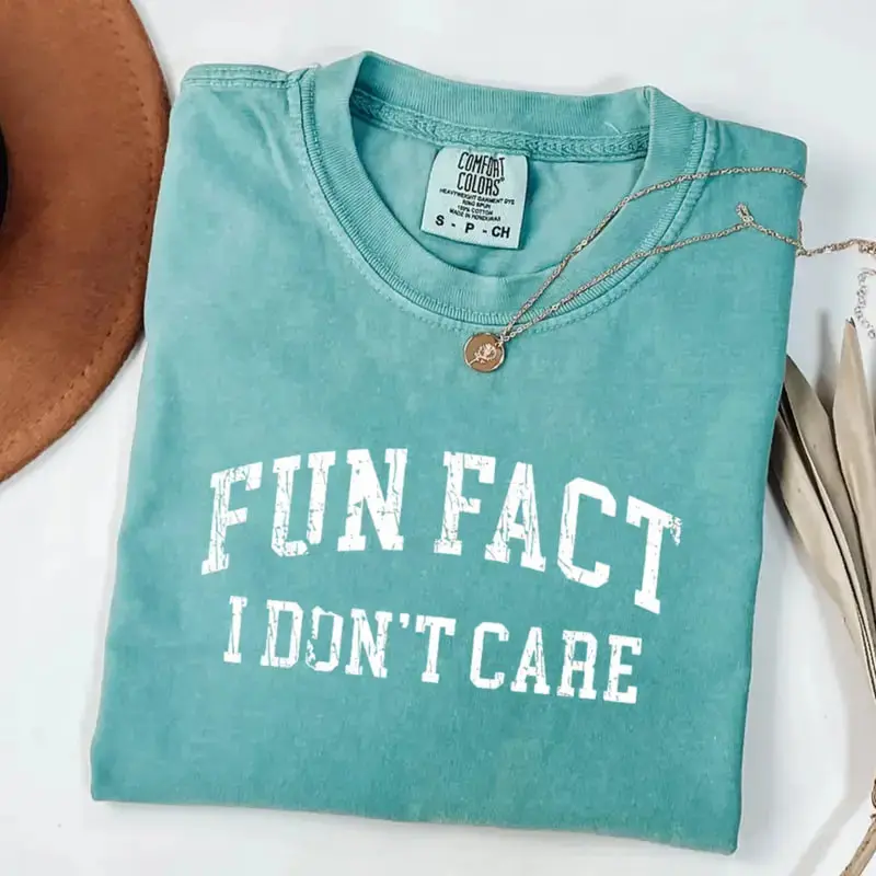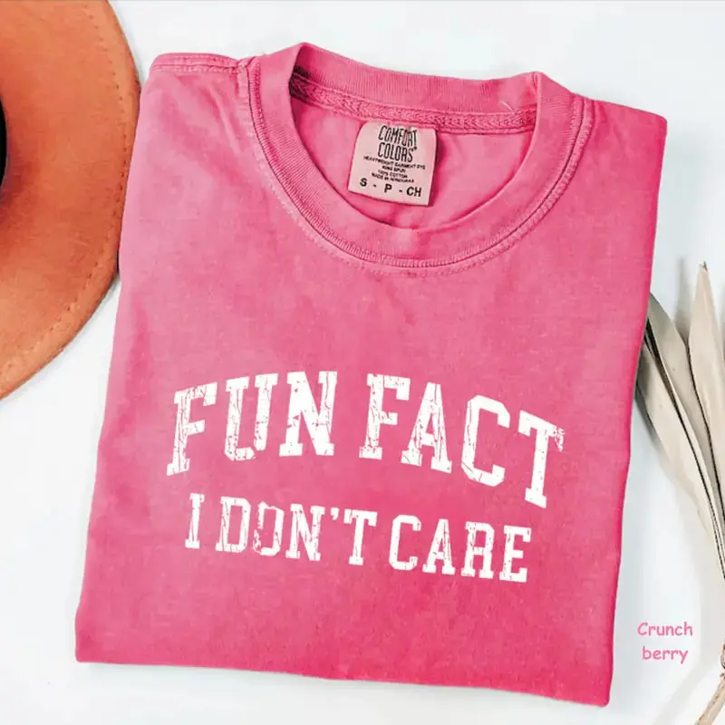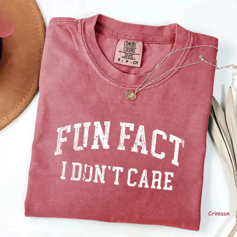 Comfort Colors “Fun Fact I Don’t Care” T-Shirt, funny quote tee with retro sarcastic graphic, soft cotton fabric, stylish gift idea perfect for women